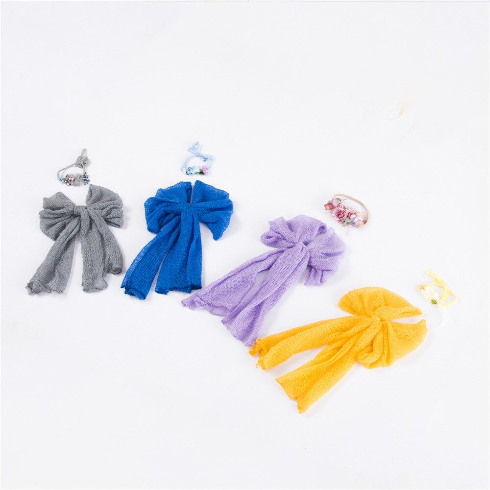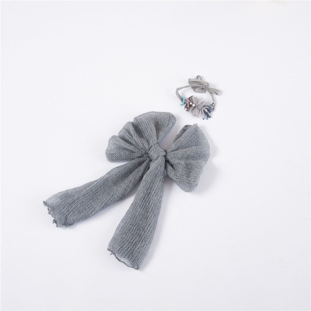 Conjunto de diadema y bebé con lazo tejido de lana envolvente y manta