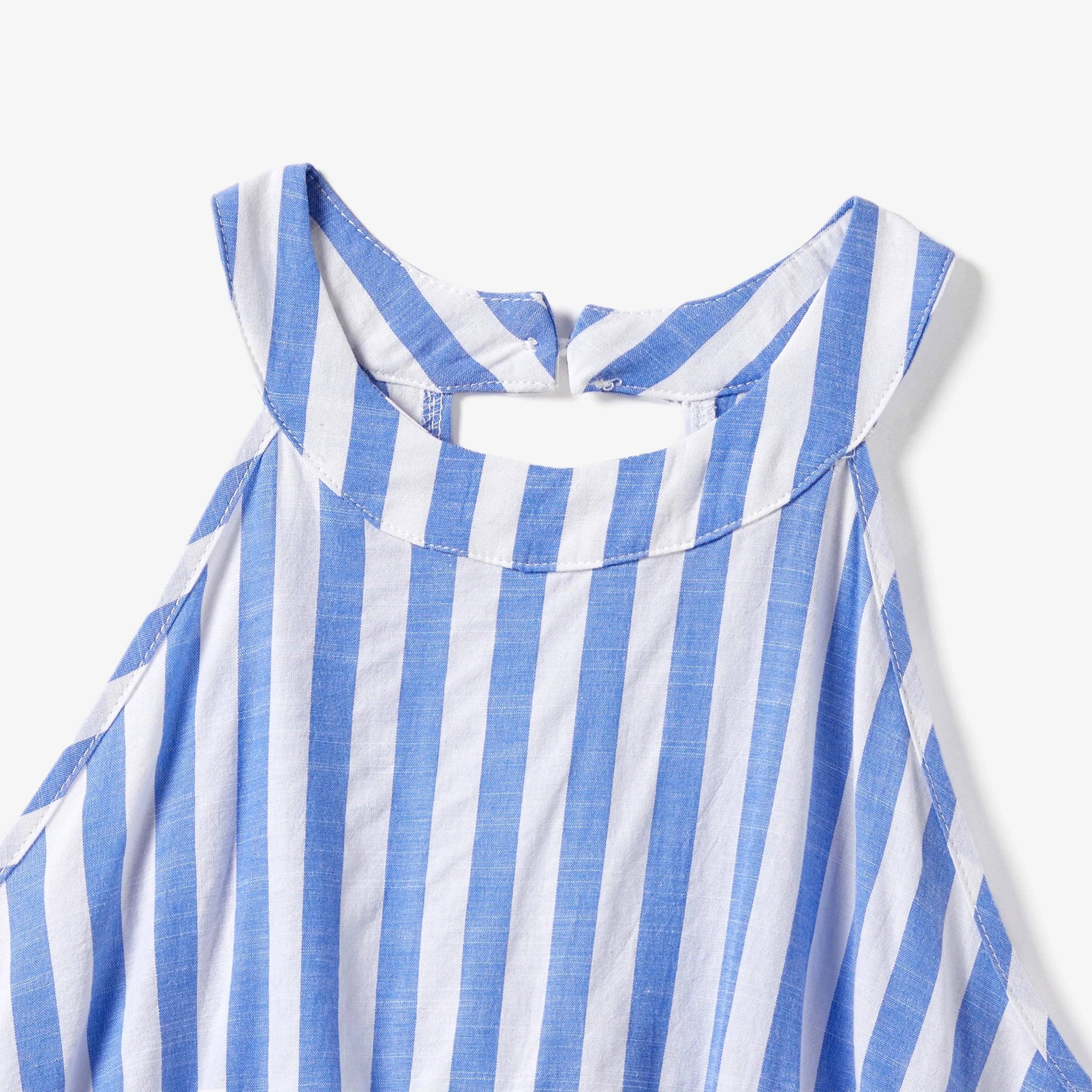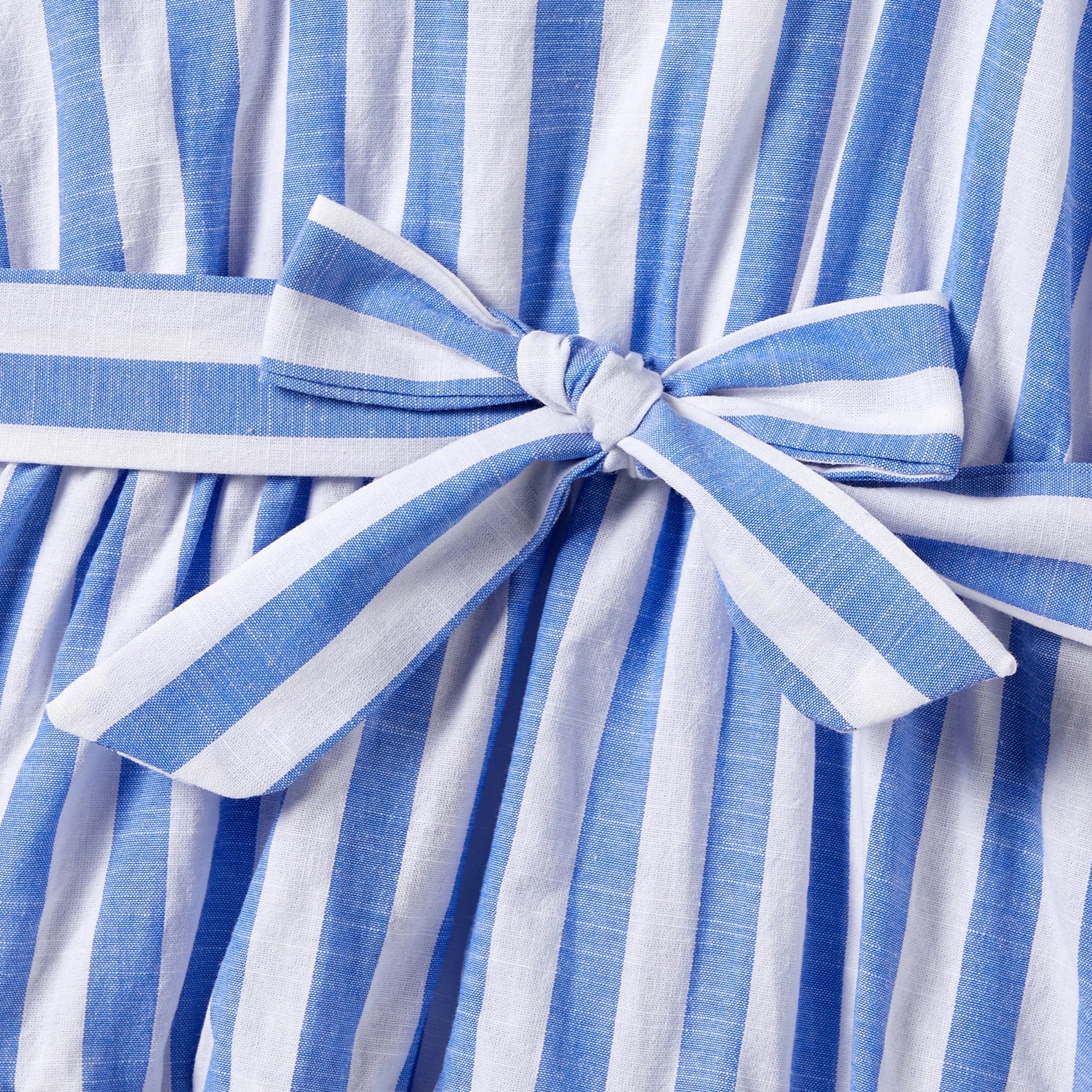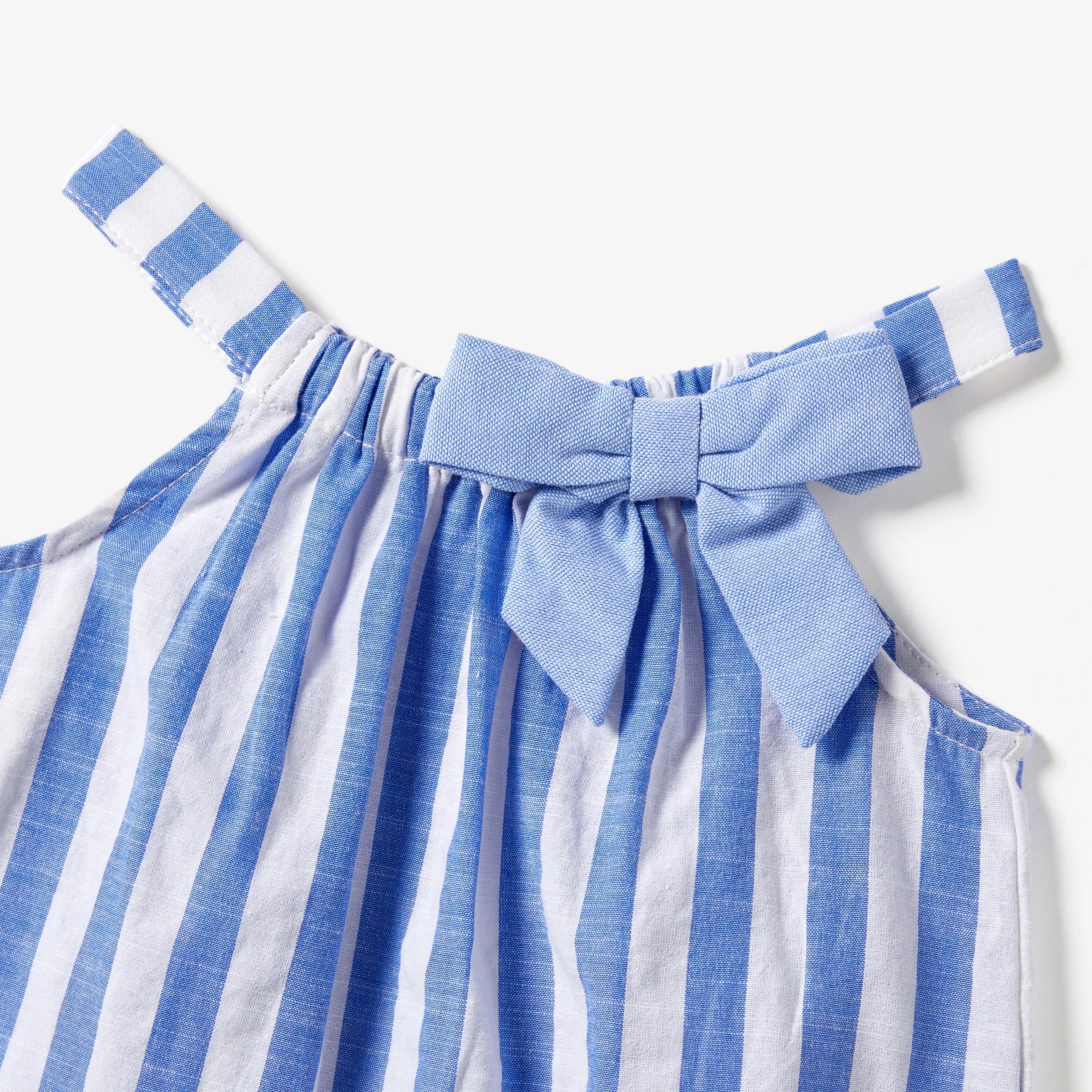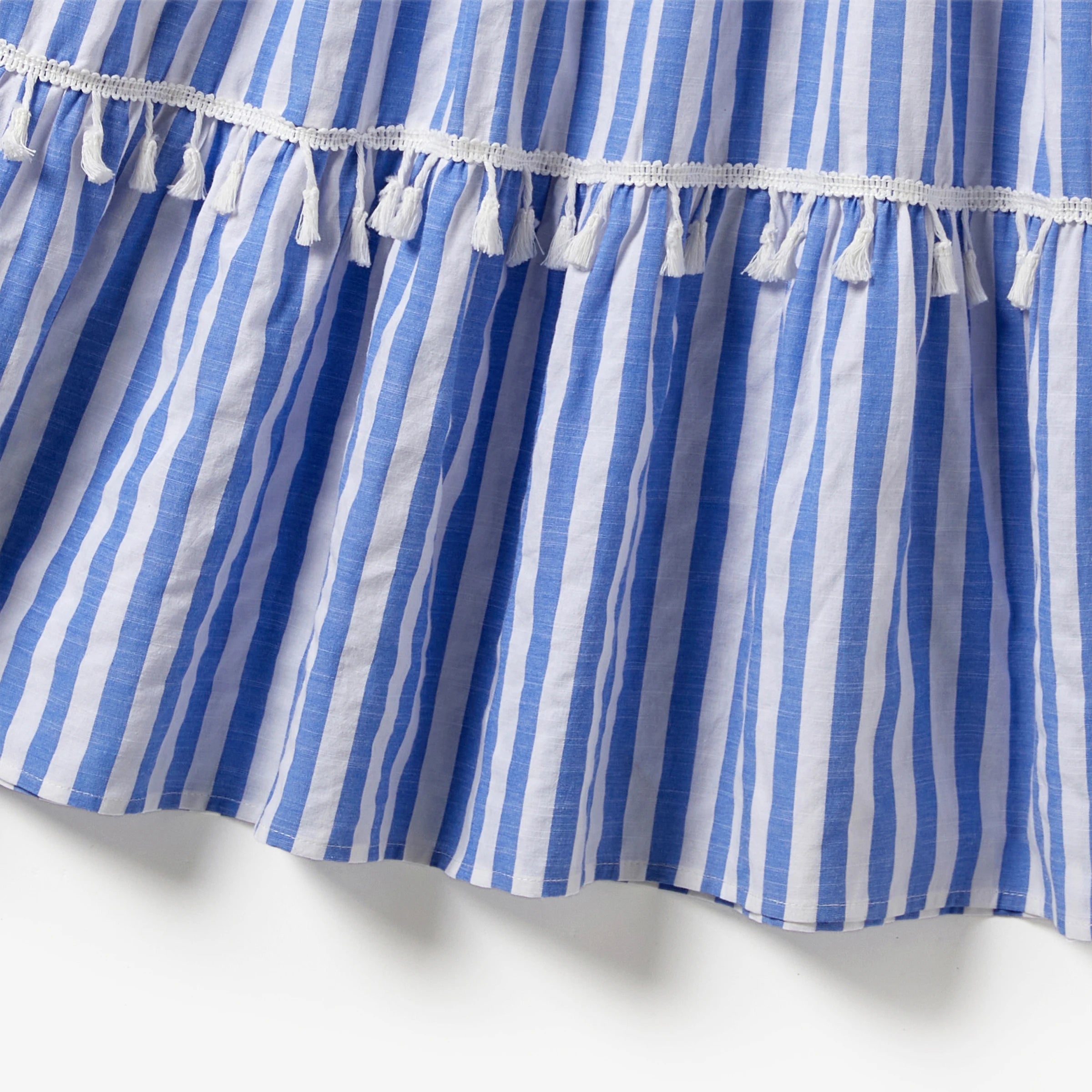 Conjuntos familiares de vestido con ribete de borlas y camisa a rayas a juego