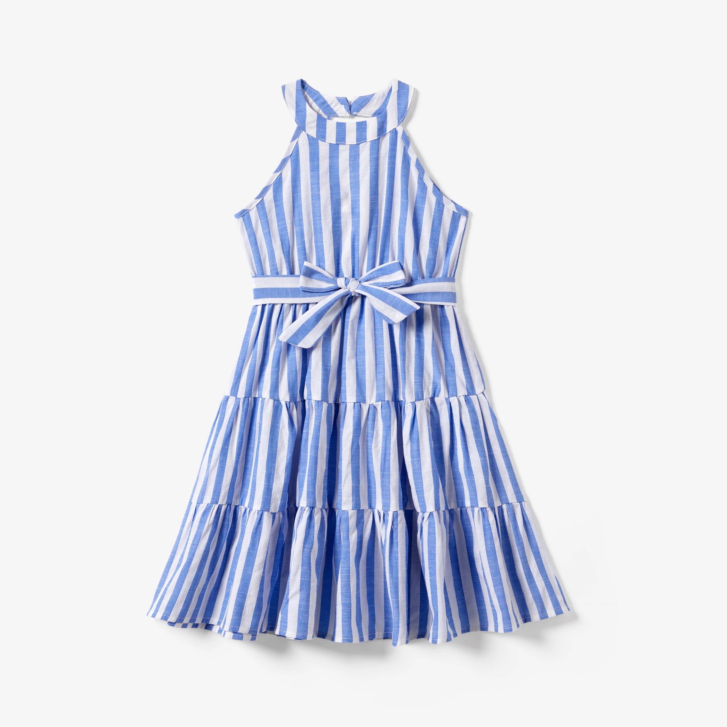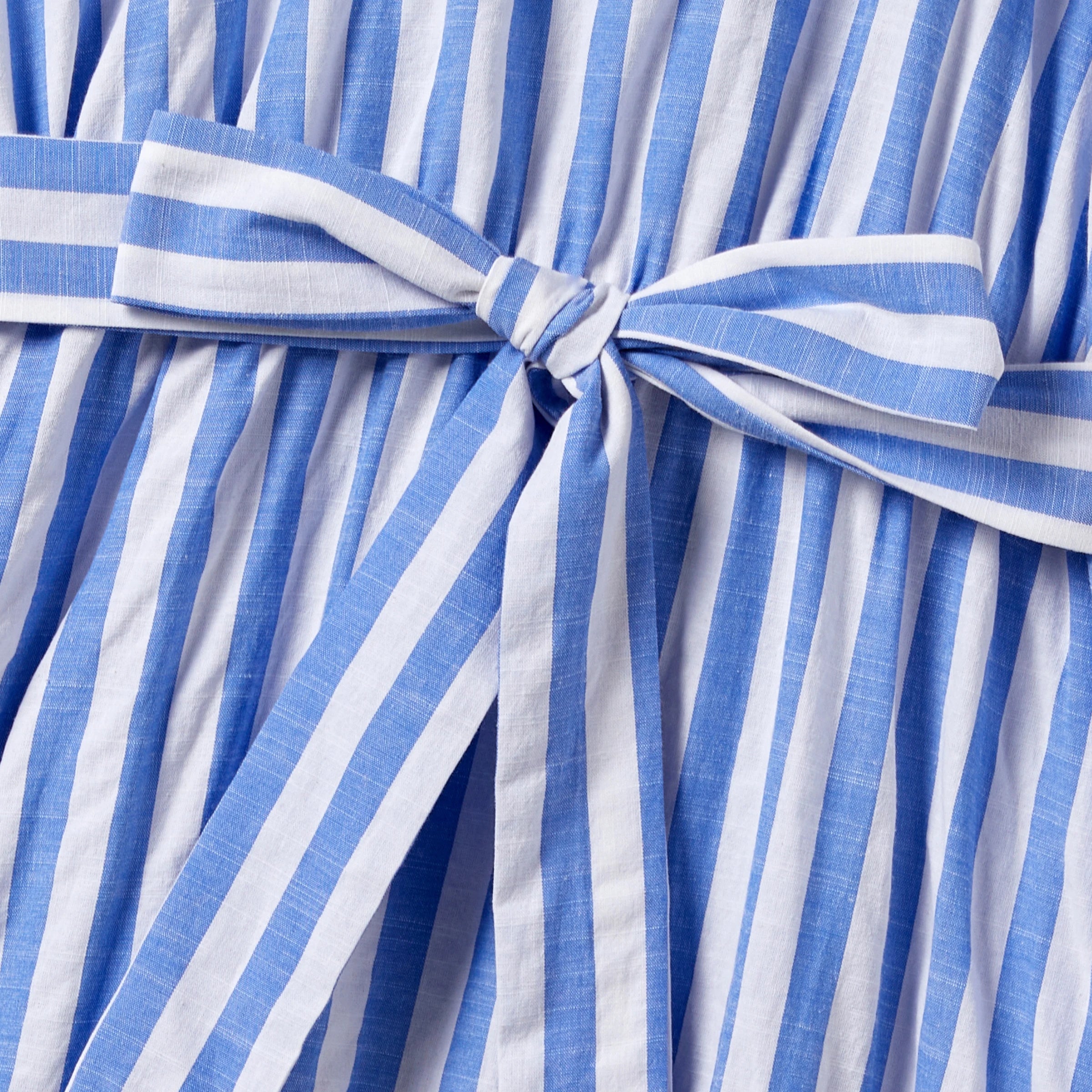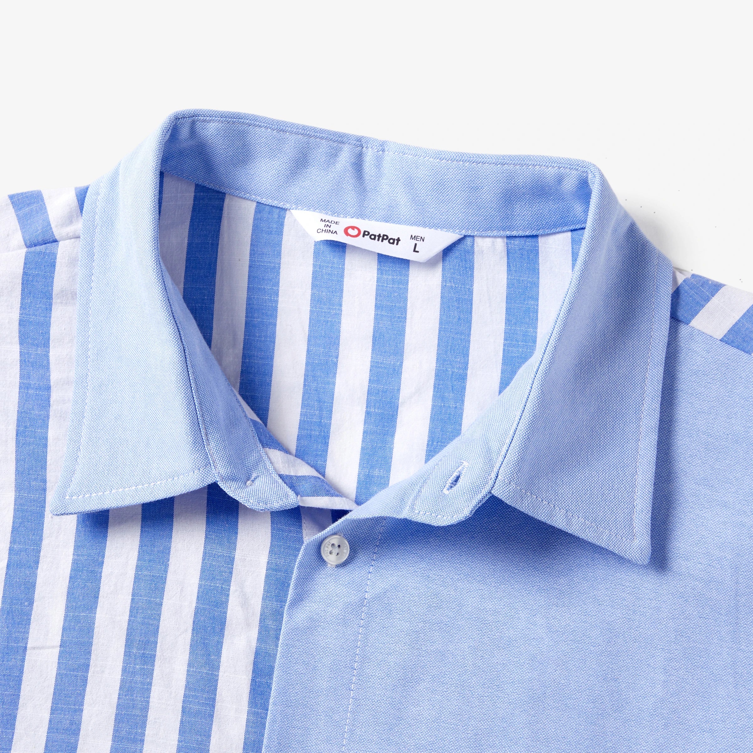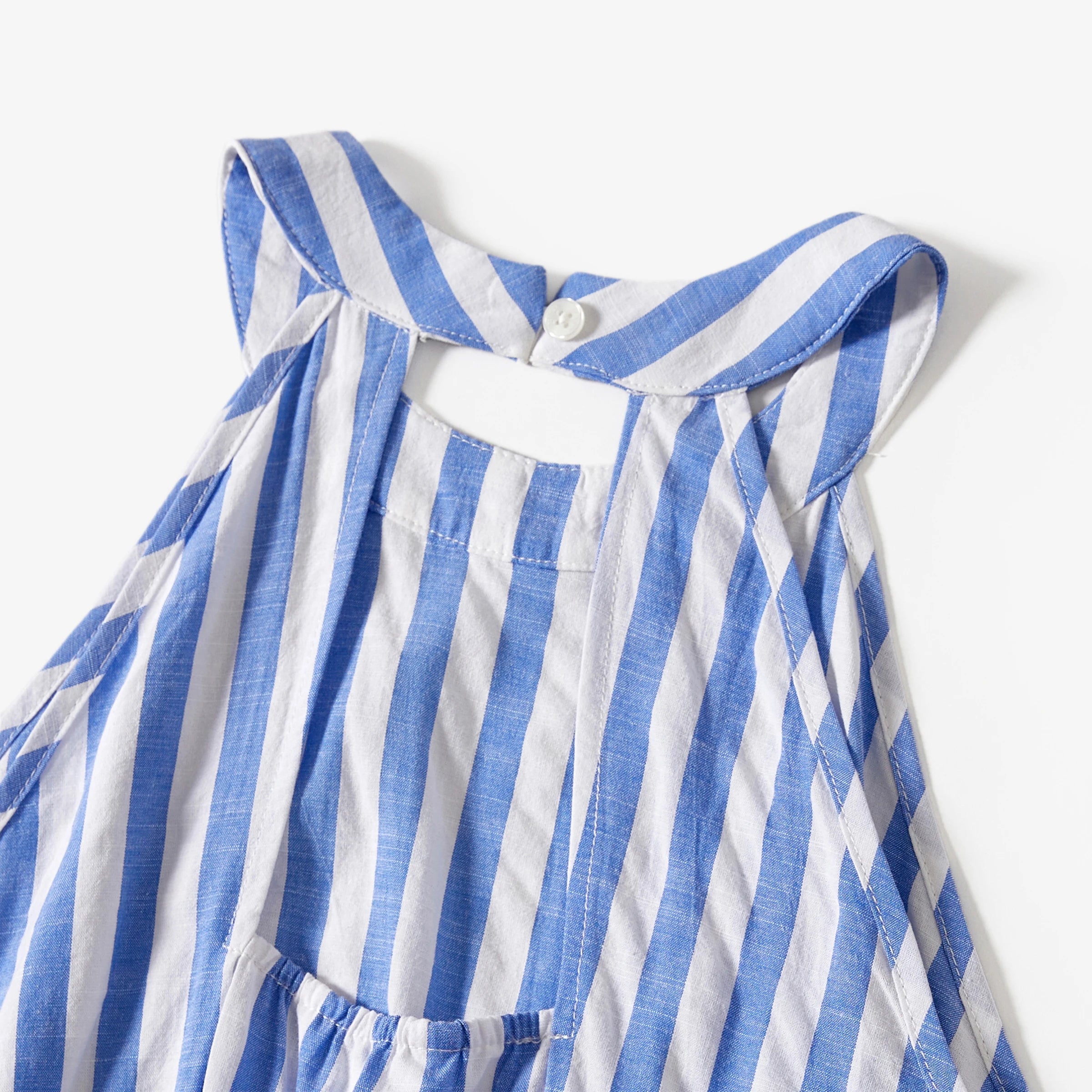 Conjuntos familiares de vestido con ribete de borlas y camisa a rayas a juego