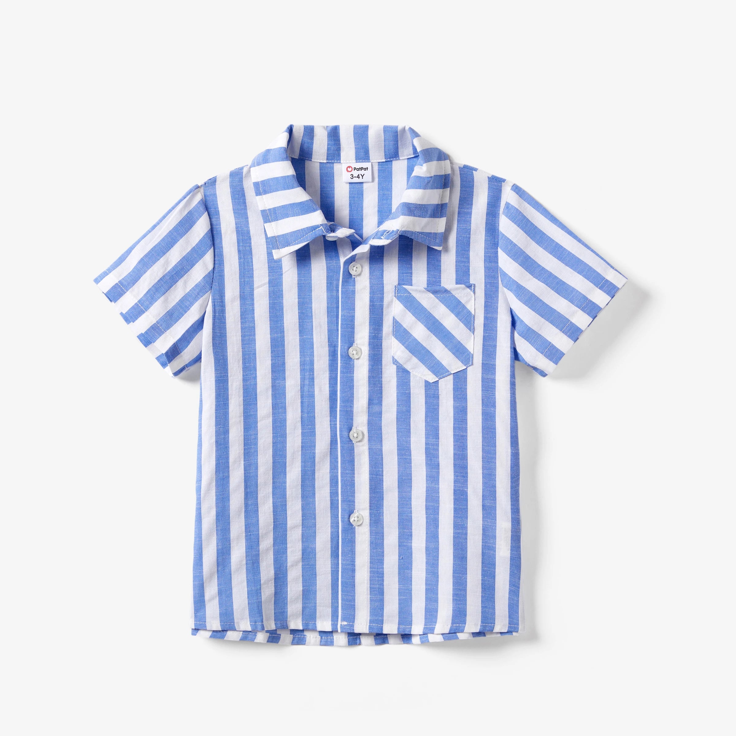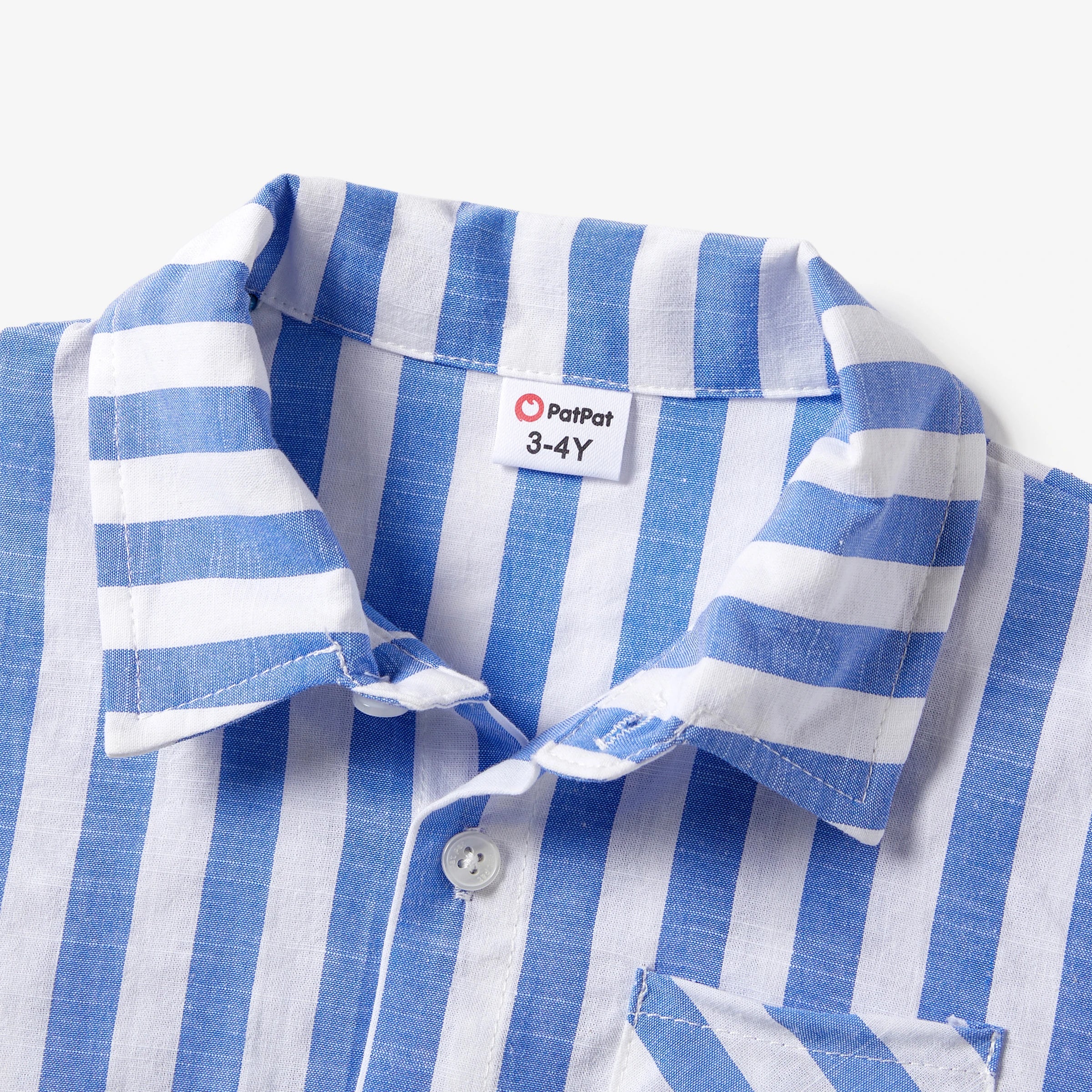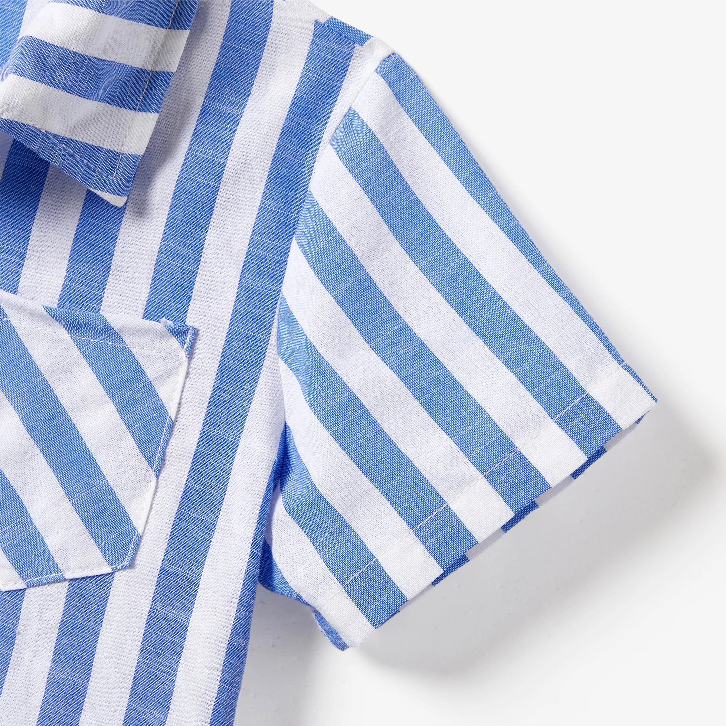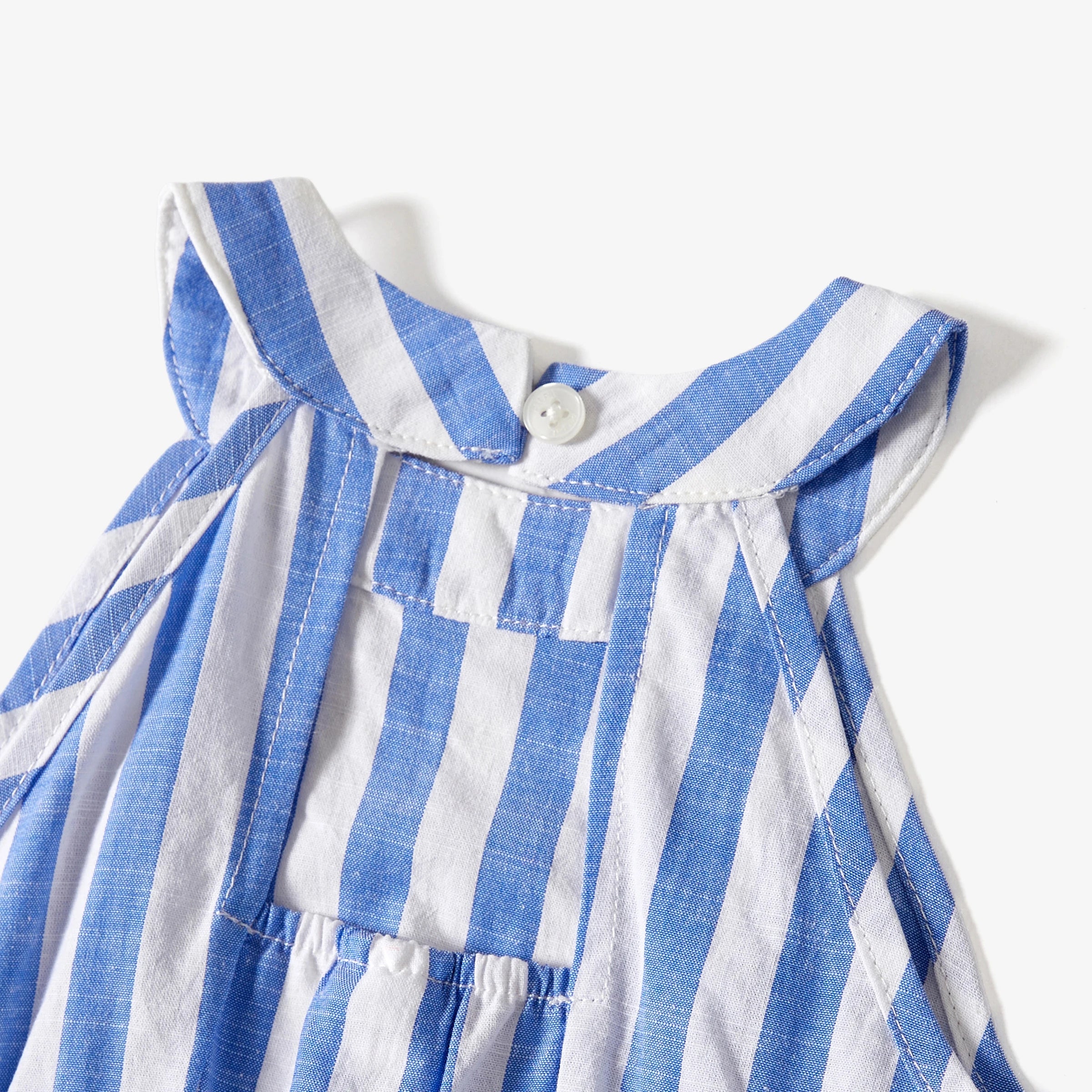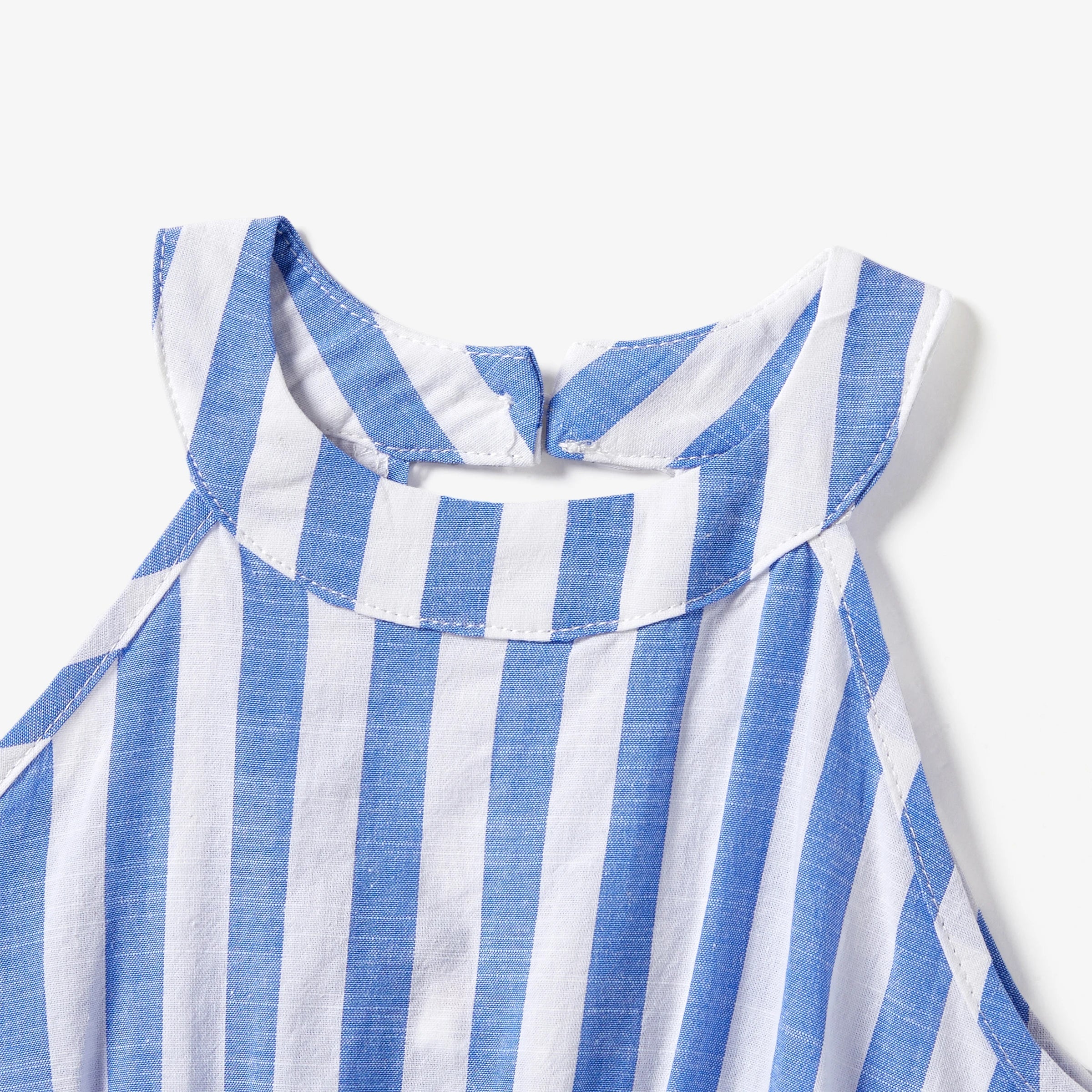 Conjuntos familiares de vestido con ribete de borlas y camisa a rayas a juego