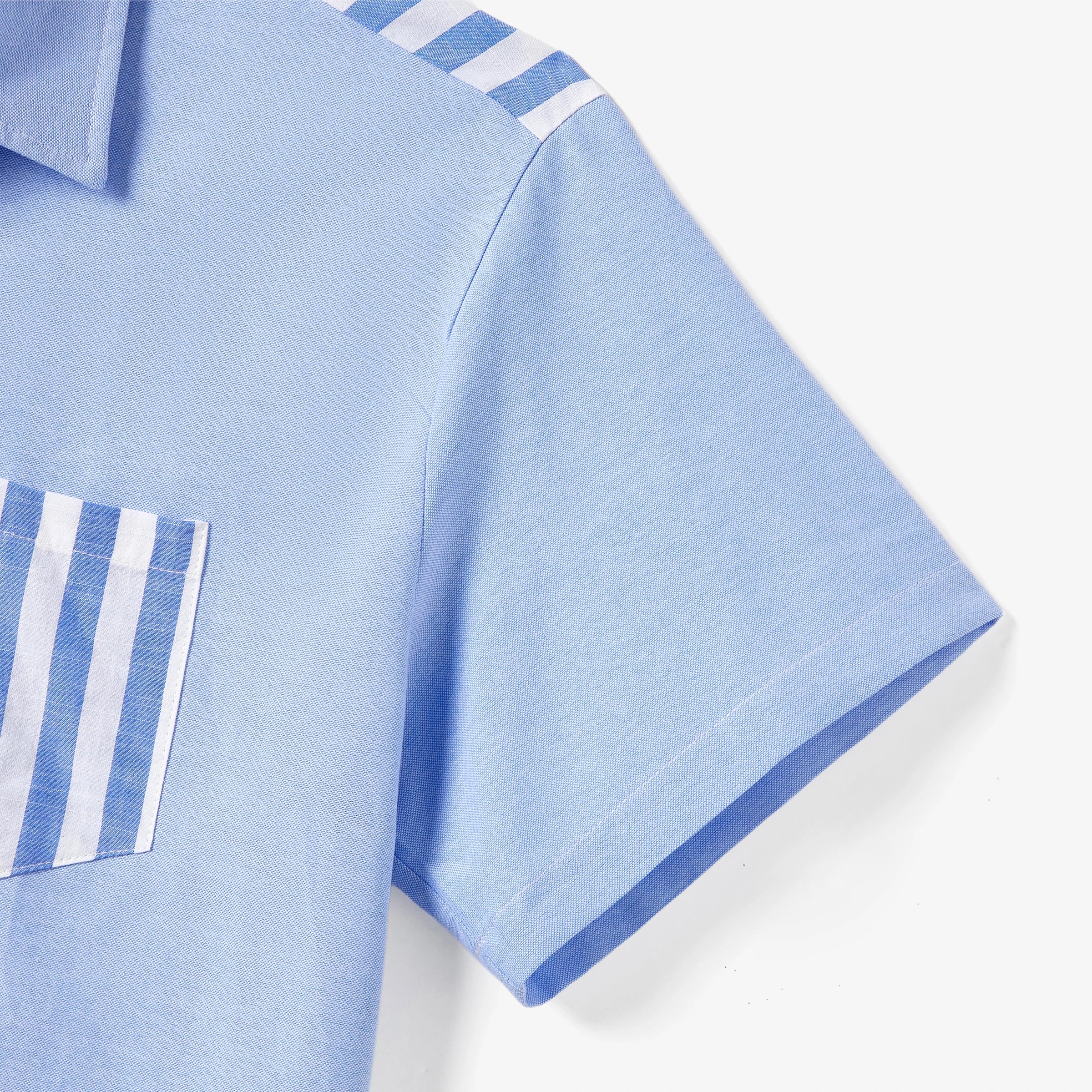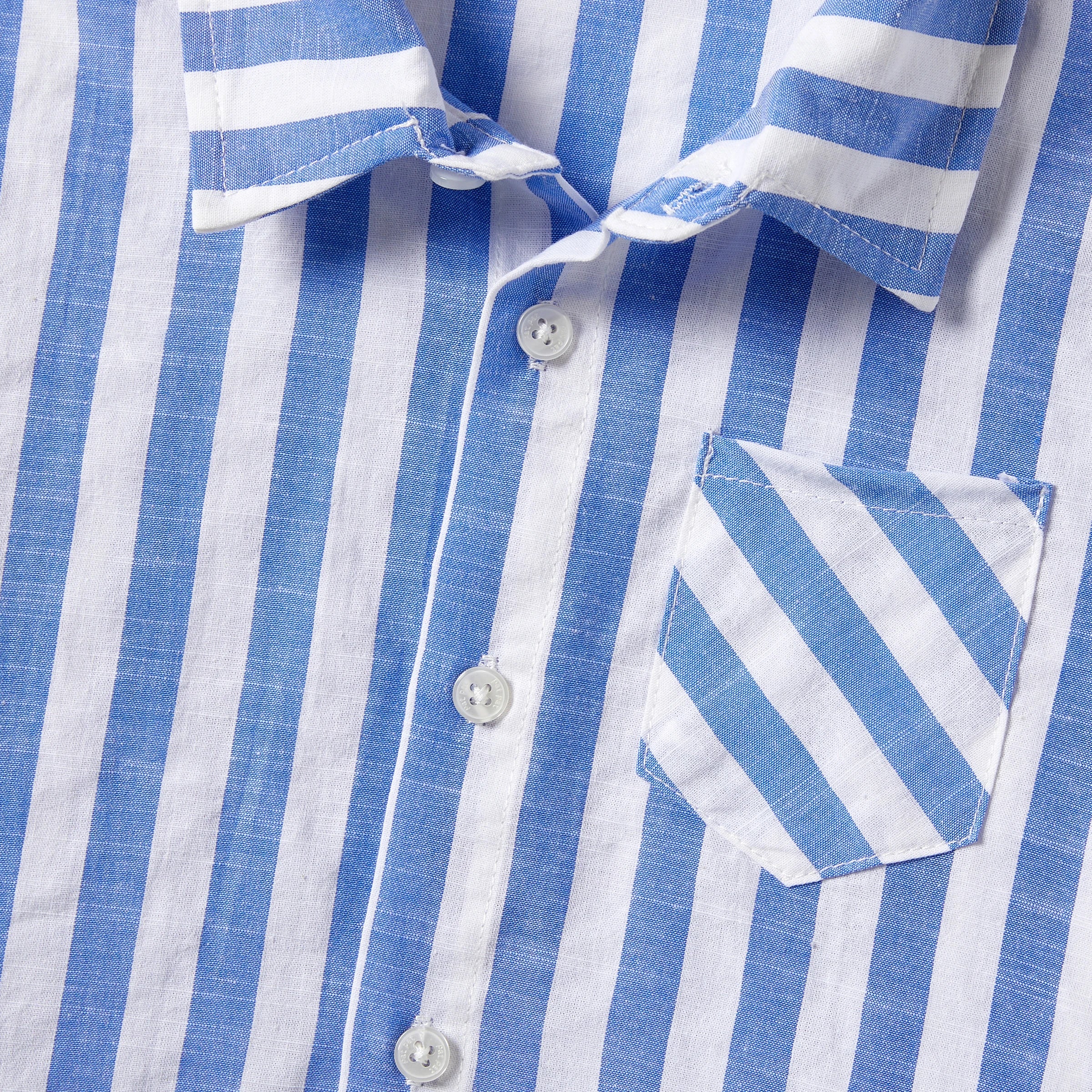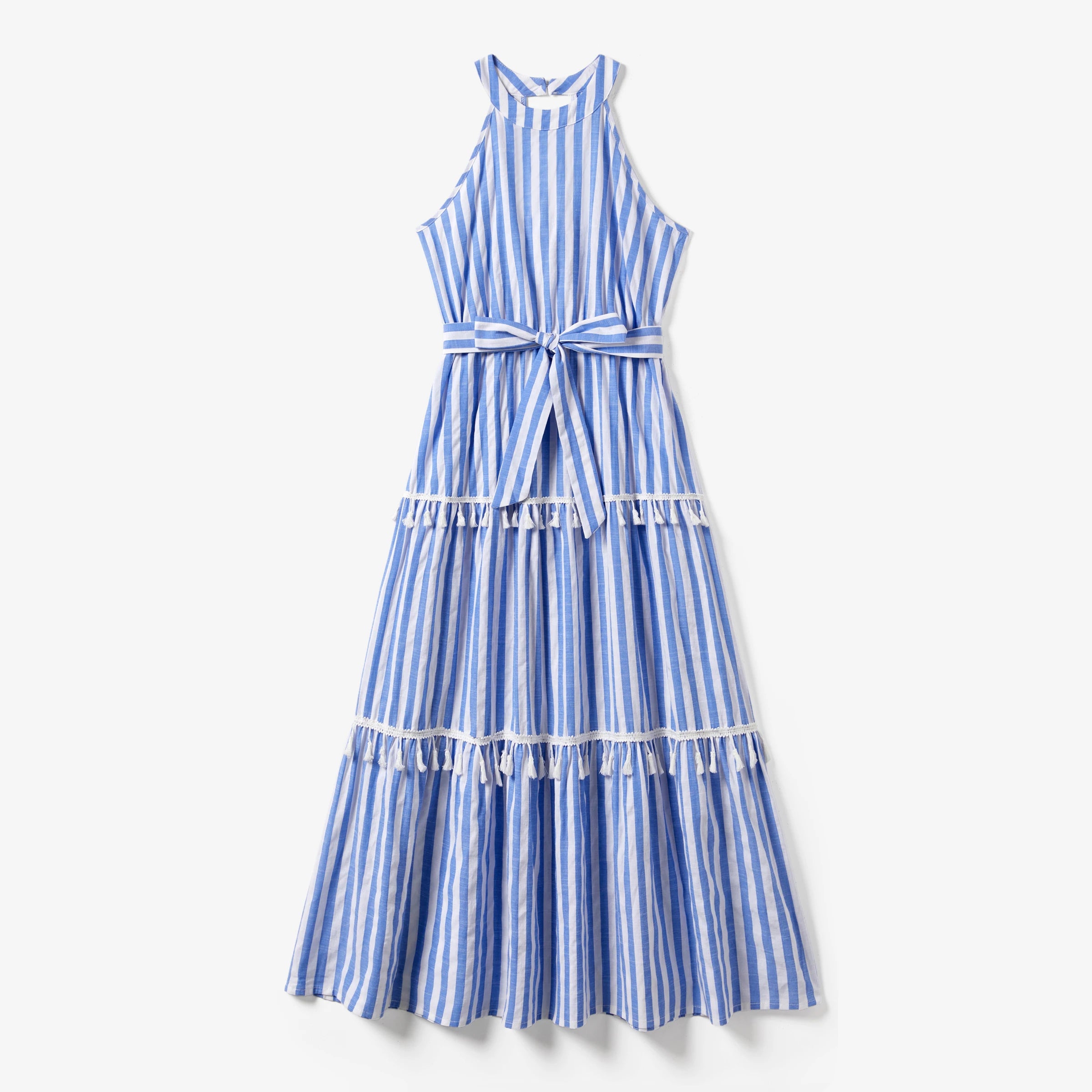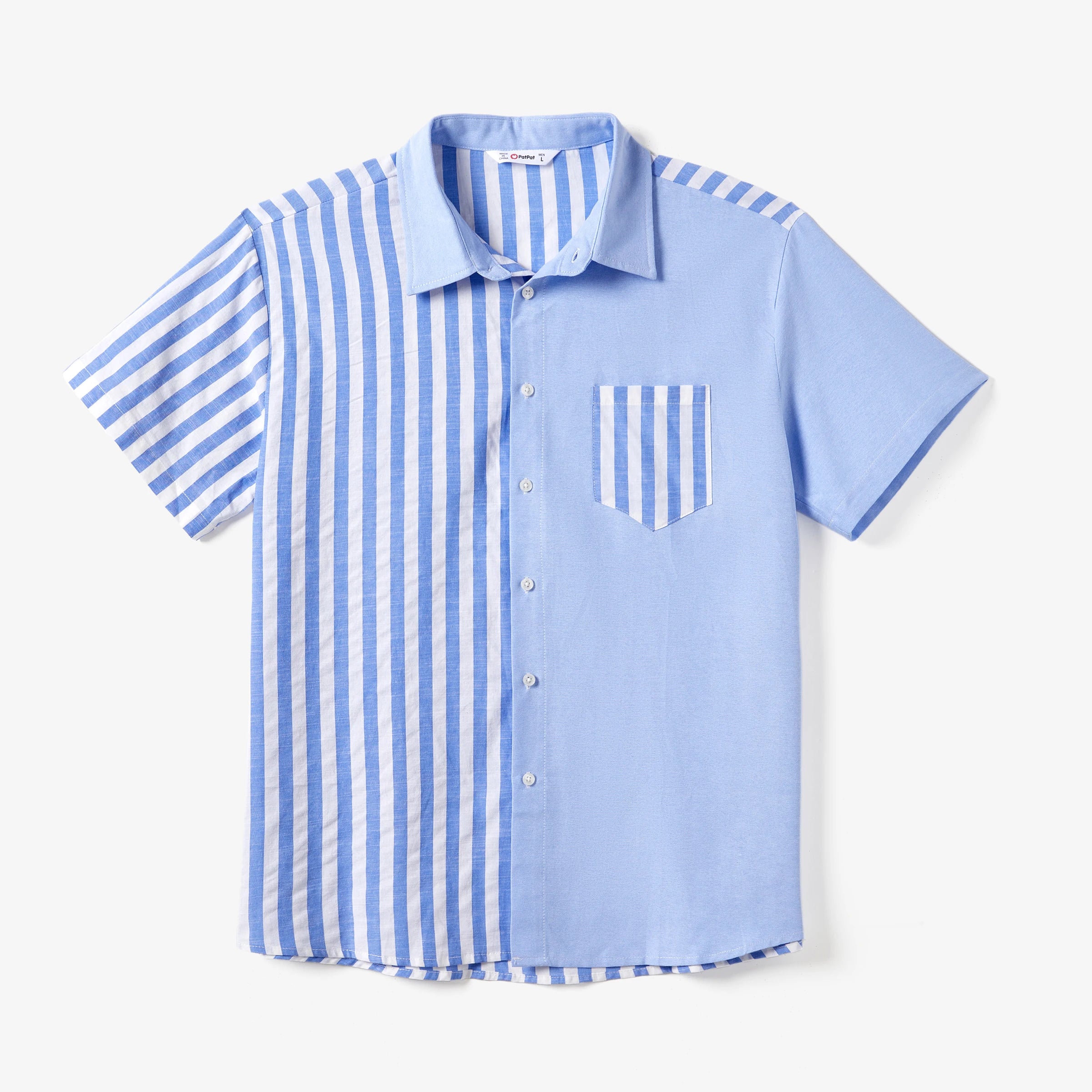 Conjuntos familiares de vestido con ribete de borlas y camisa a rayas a juego