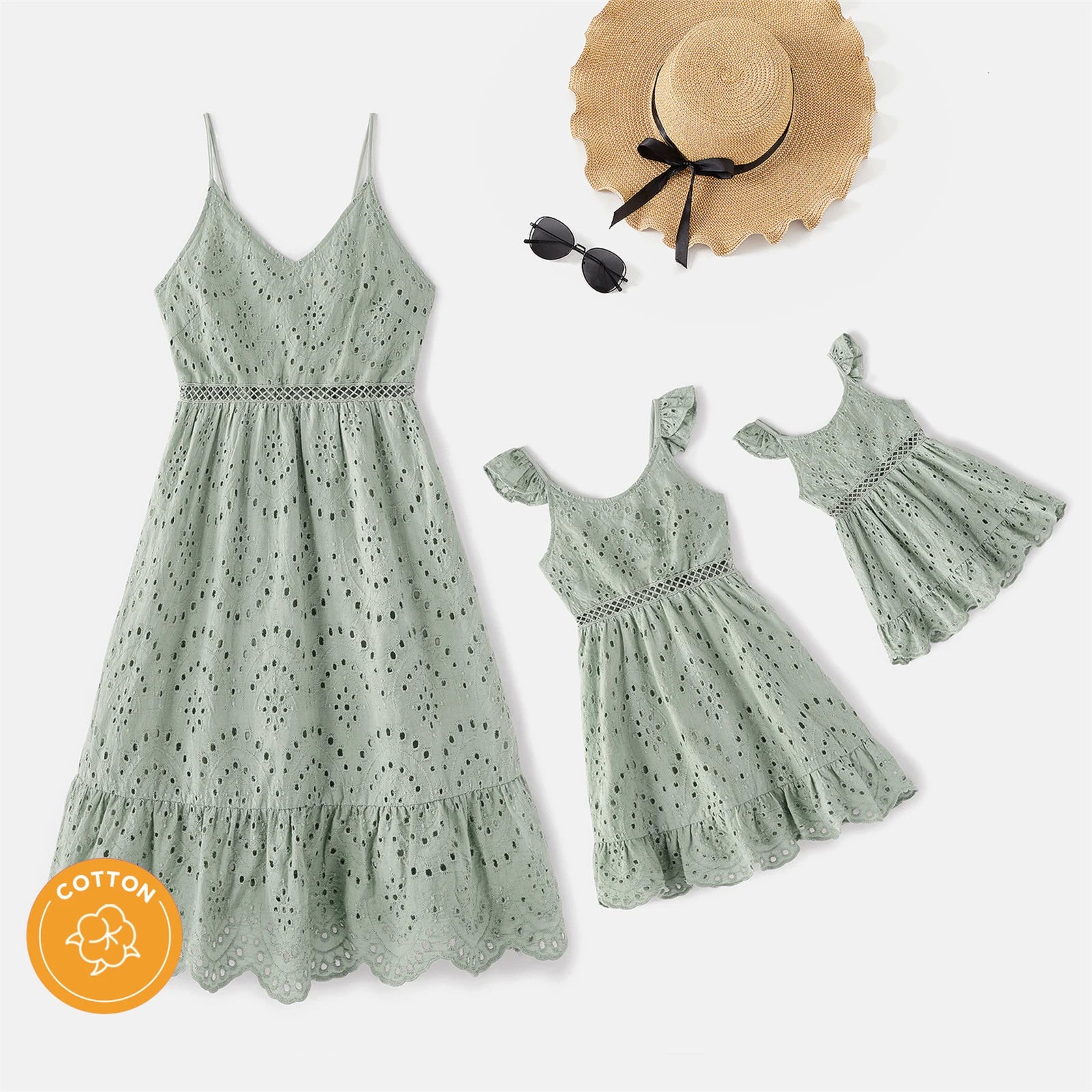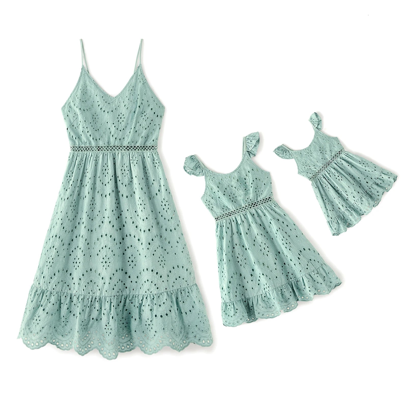 Vestidos de algodón con cuello en V a juego para mamá e hija