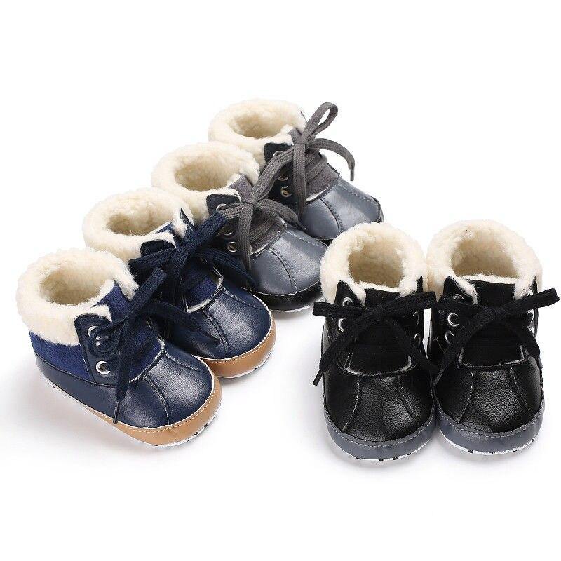 Nuestros zapatos de suela blanda, indulgentes y flexibles, brindan a los pies pequeños una comodidad increíble y mucho espacio para moverse. Tiene un forro esponjoso para proteger los pies del bebé del frío y también luce súper elegante para la declaración de estilo del pequeño. Los cordones de los zapatos le dan un aspecto encantador.