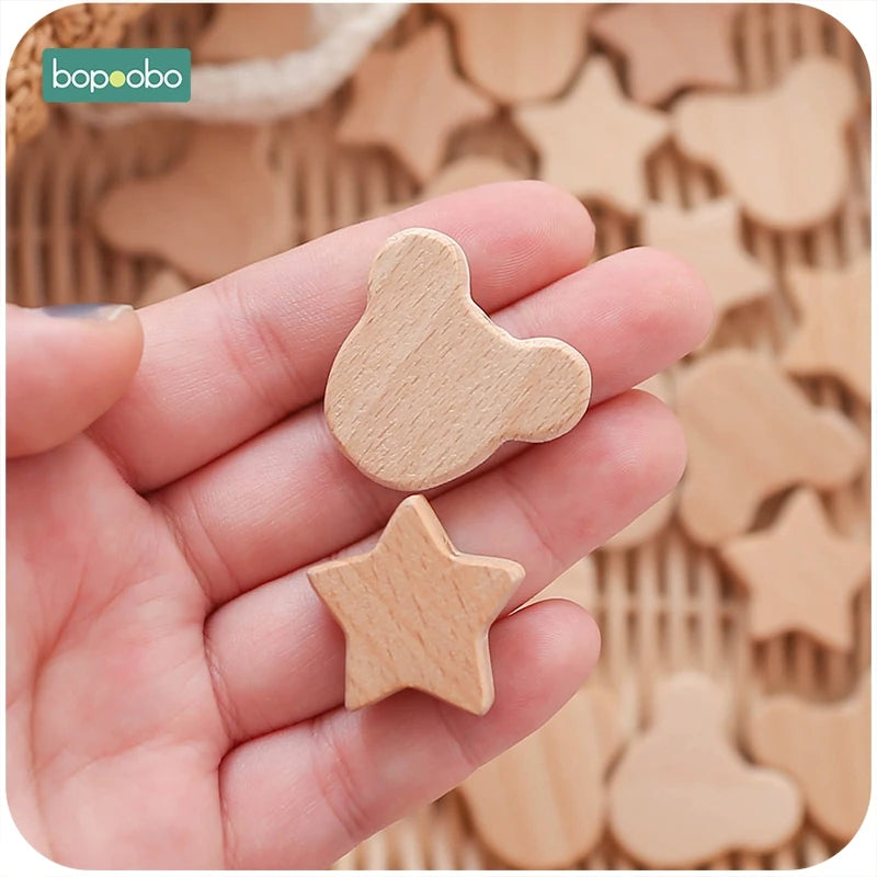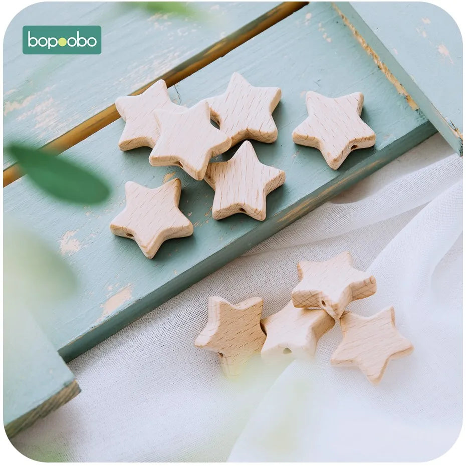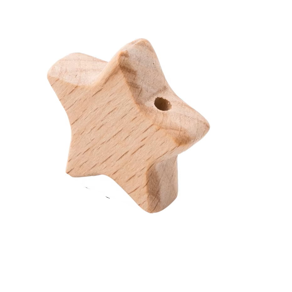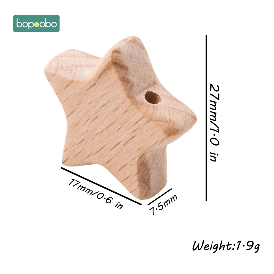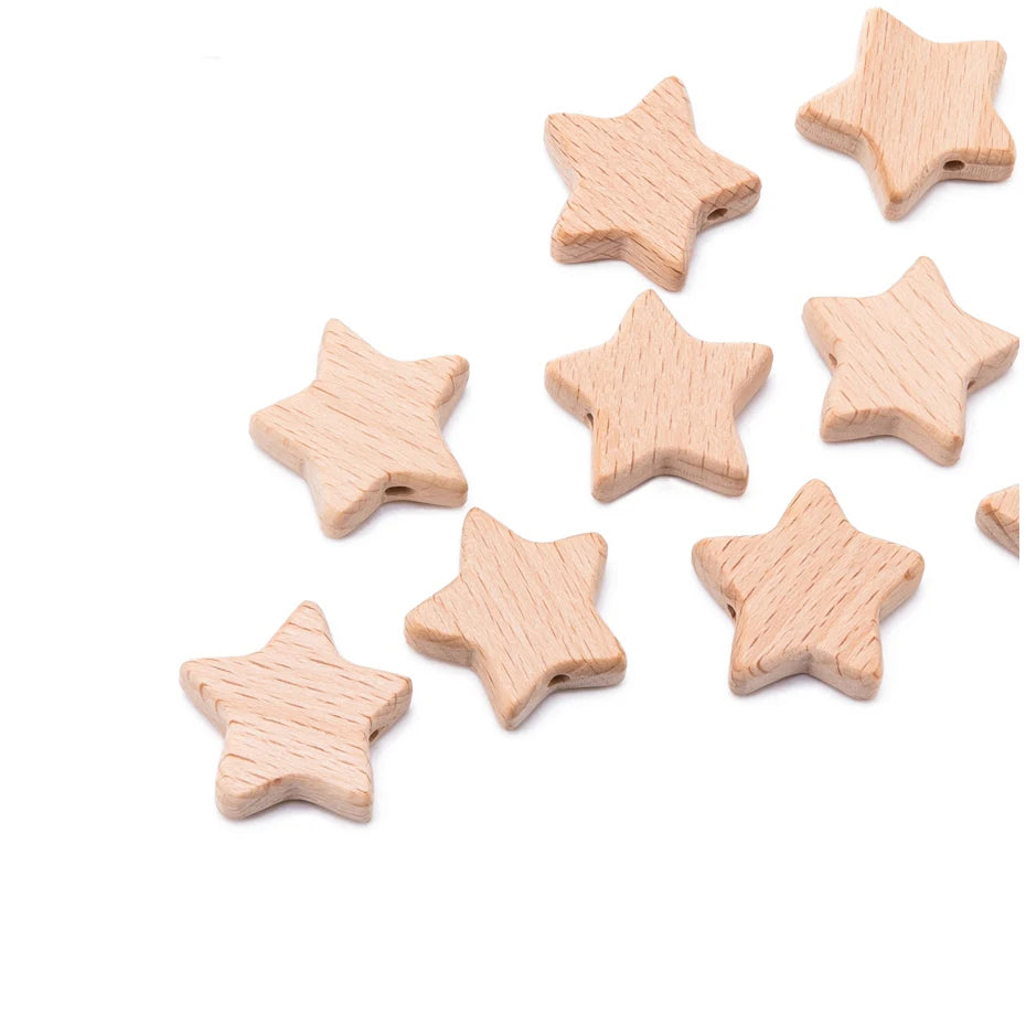 10 Piezas de Cuentas de Estrella de Madera - Cuentas de Madera de Haya Natural para Bebés | Sin BPA, Masticables, Seguras para Manualidades DIY