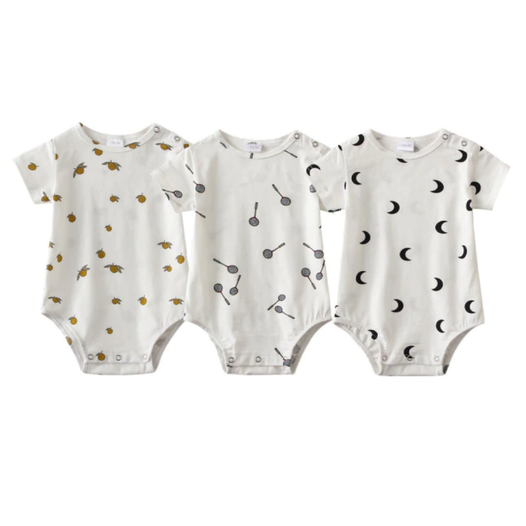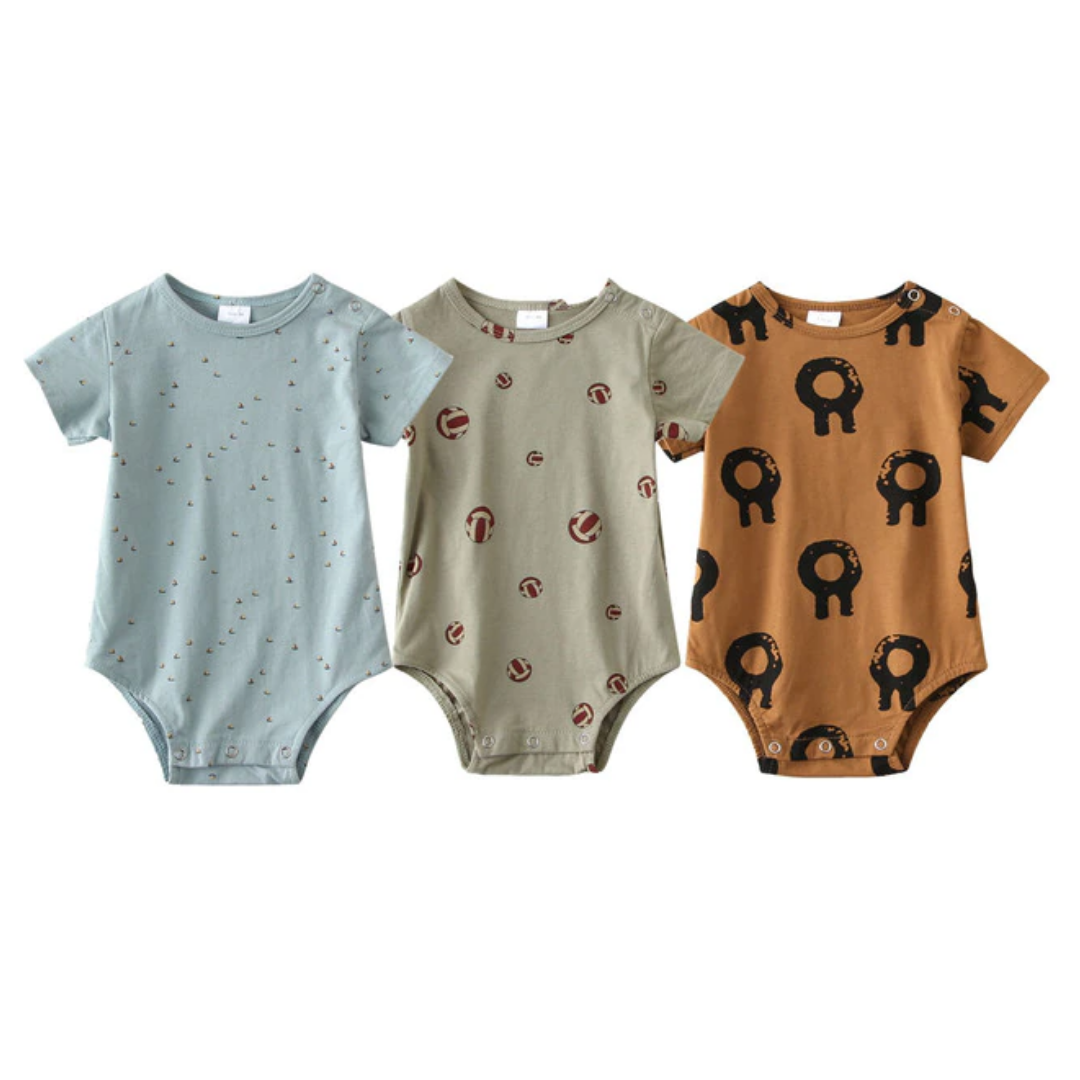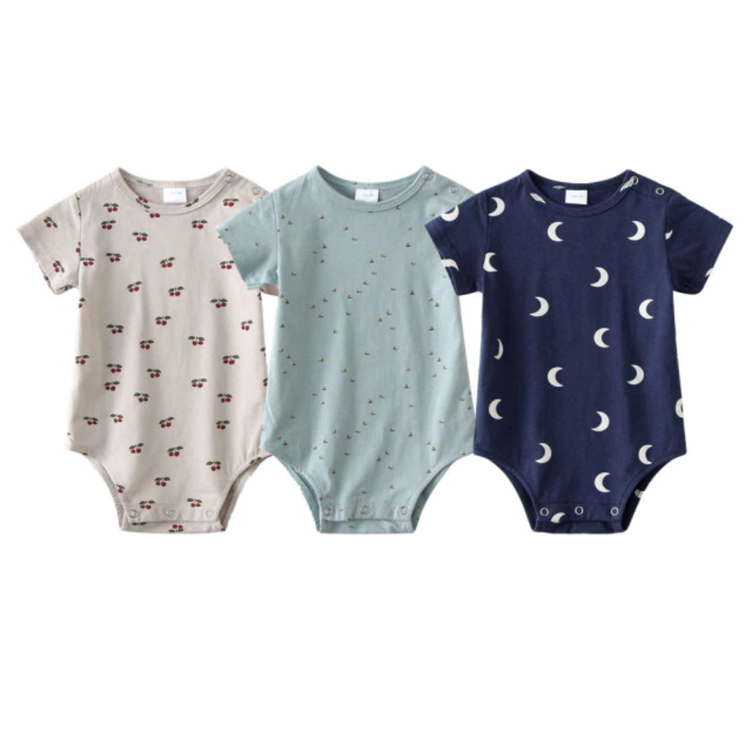 Paquete de 3 piezas de monos de manga corta para bebés de algodón suave con estampado de patrones