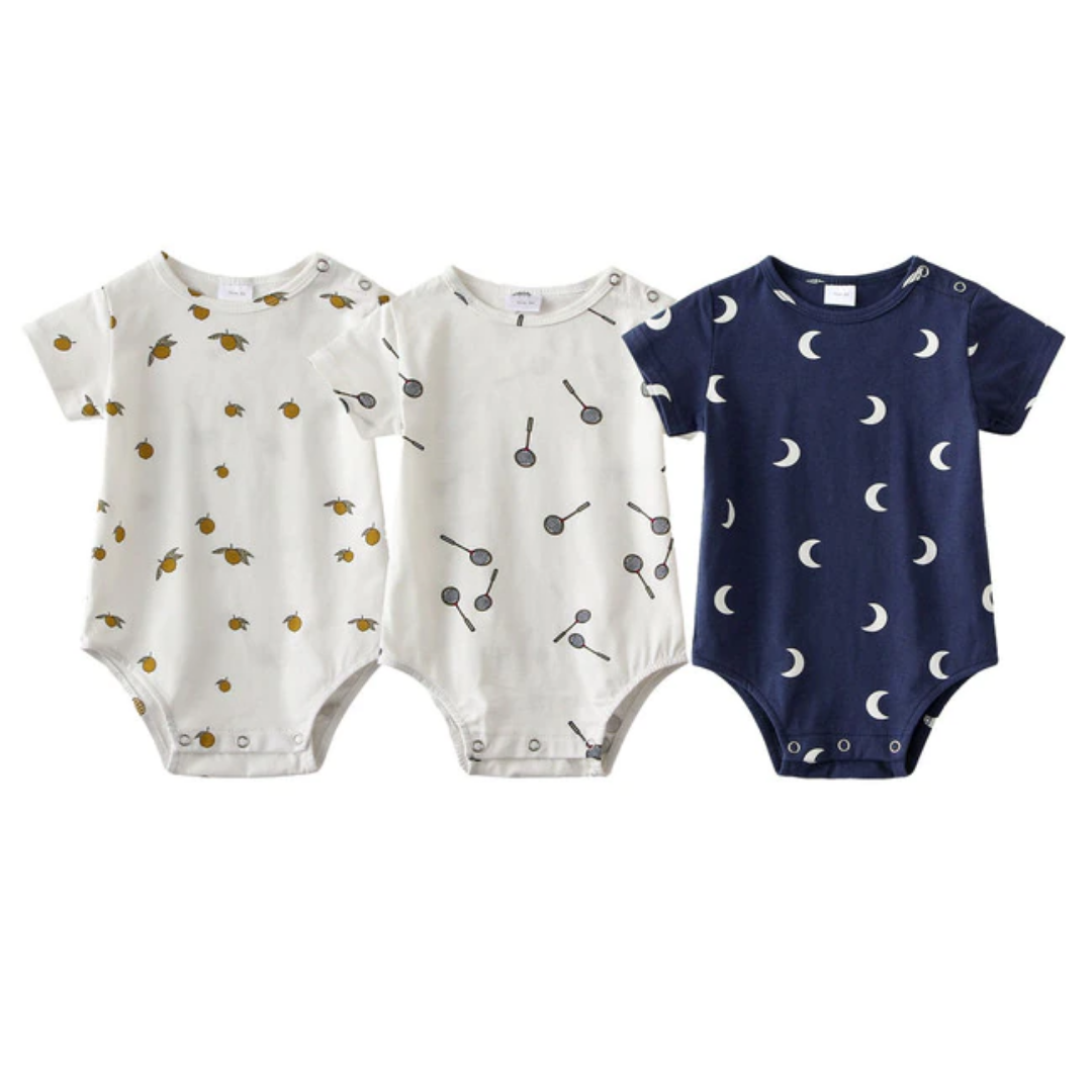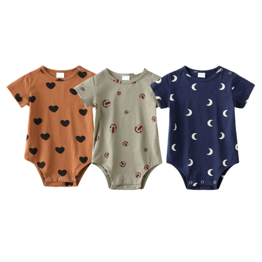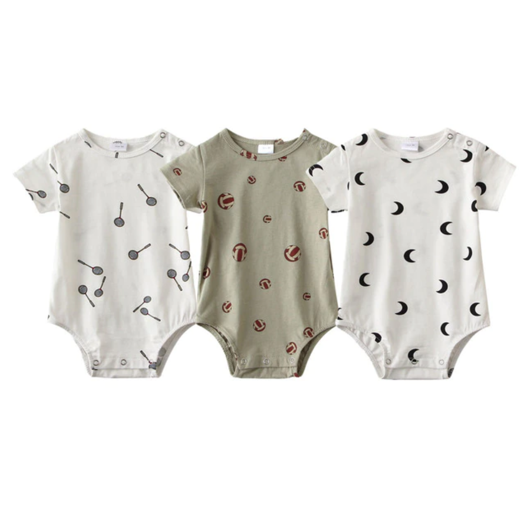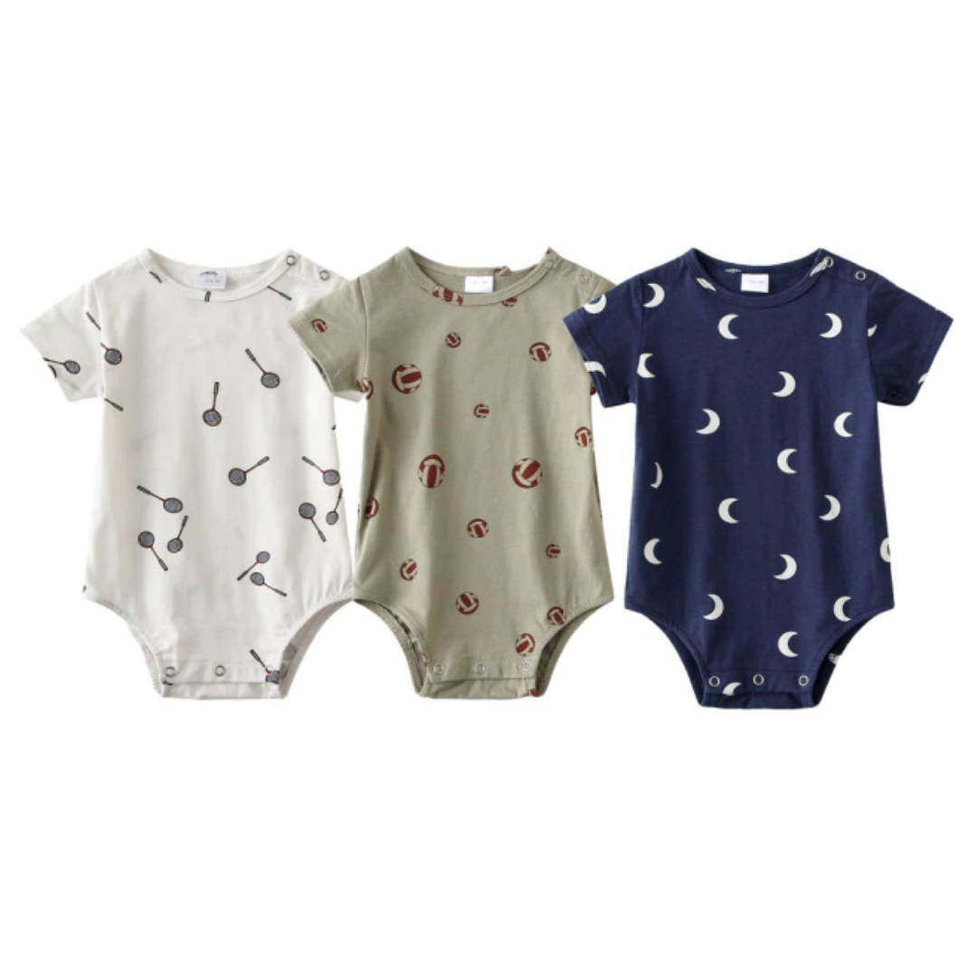 Paquete de 3 piezas de monos de manga corta para bebés de algodón suave con estampado de patrones