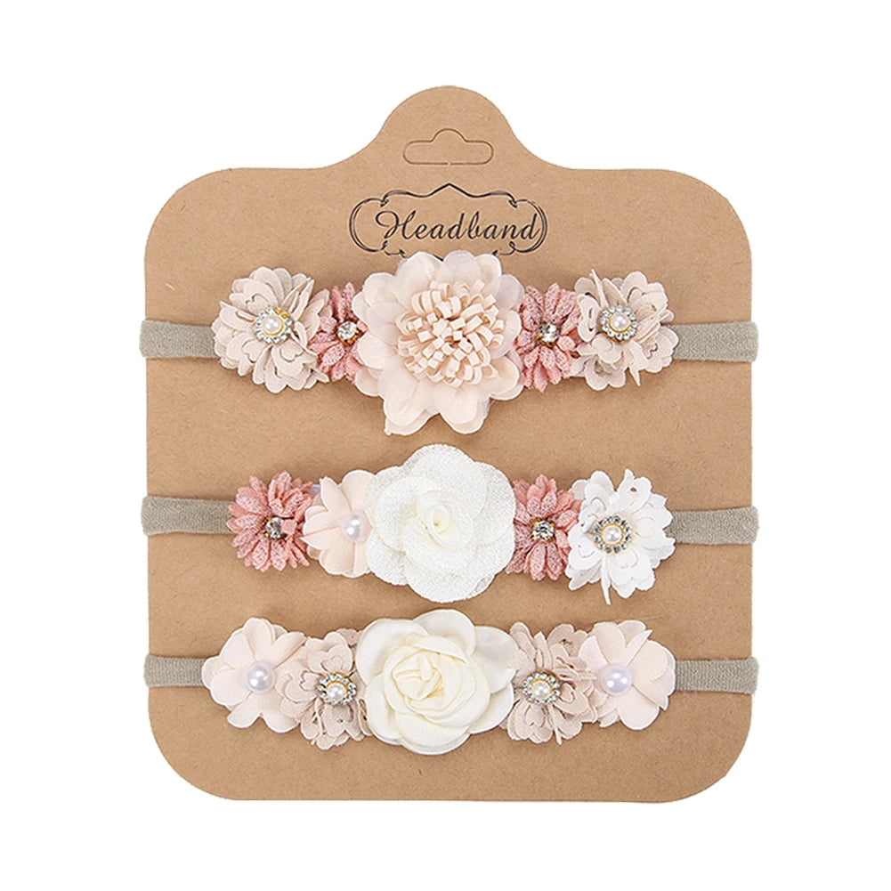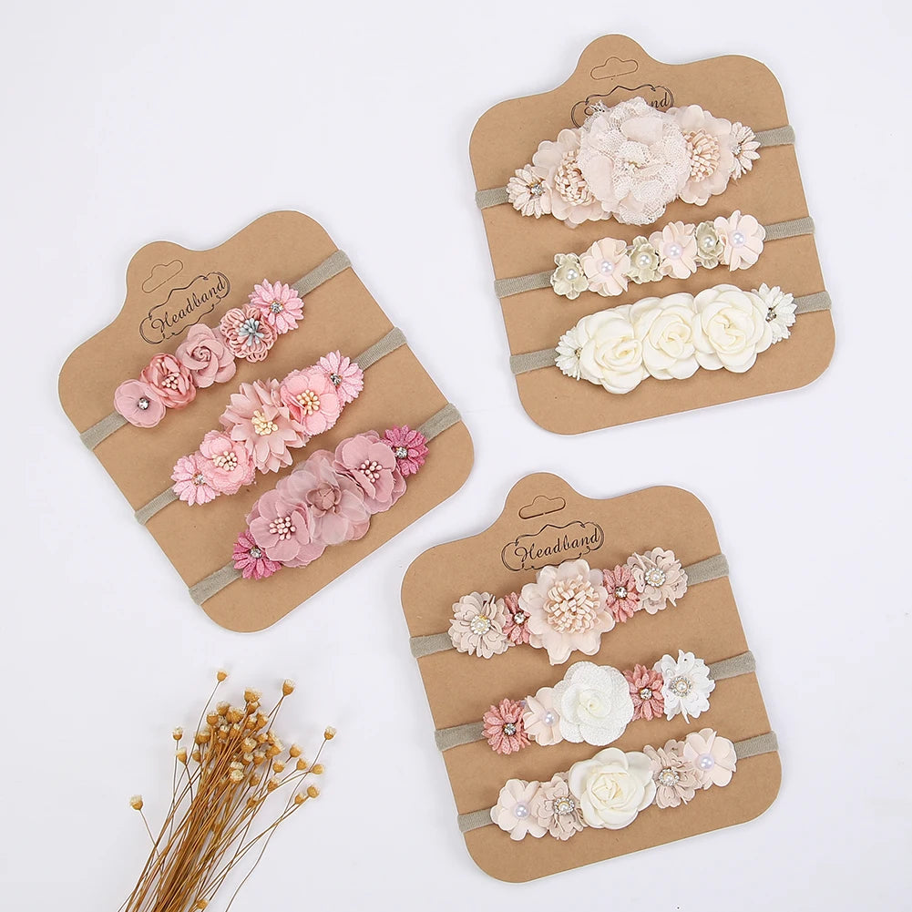 3 Piezas/Set Diademas de Flores Artificiales para Bebés Niñas Diademas de Cabello de Nailon con Estrás Accesorios de Fotografía Mini para Niños Accesorios de Moda para el Cabello