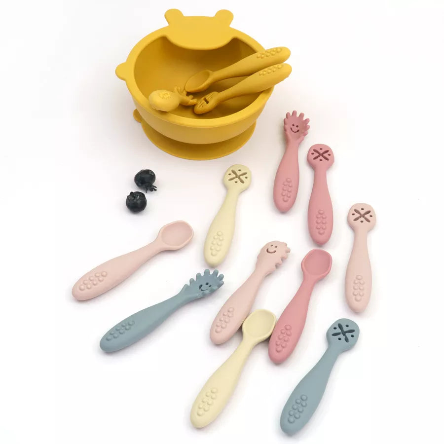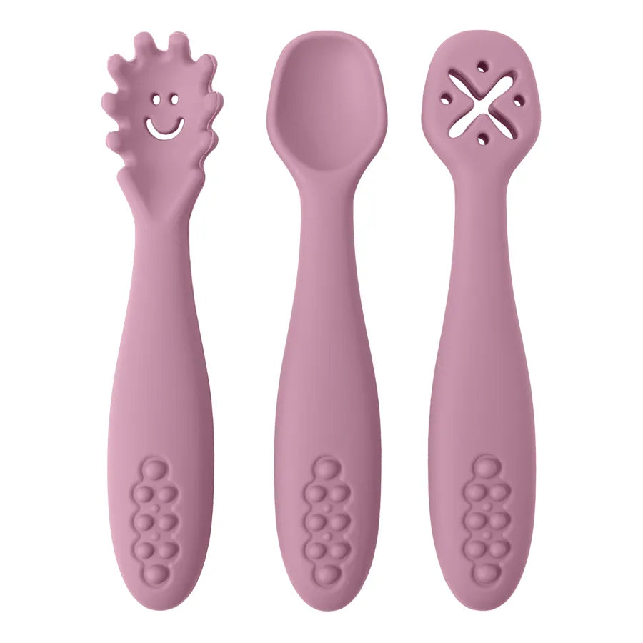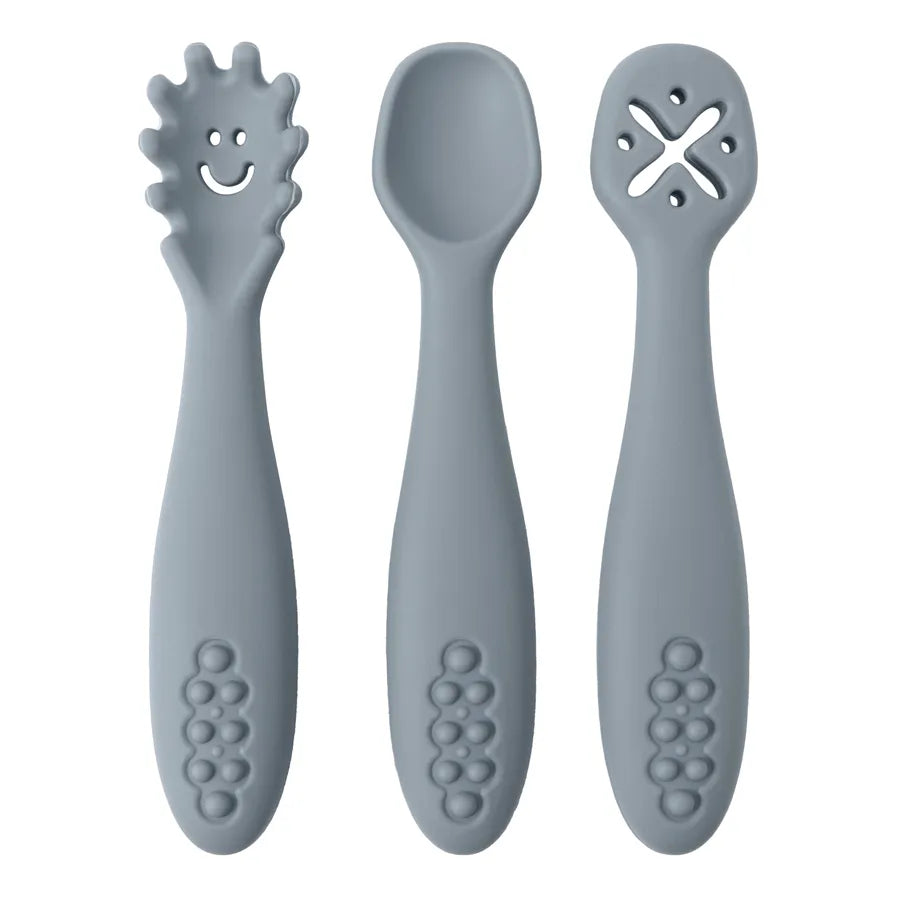 Juego de utensilios de silicona para bebé de 3 piezas para aprender a comer