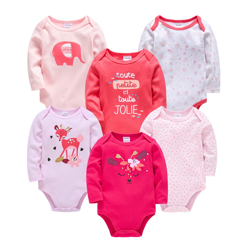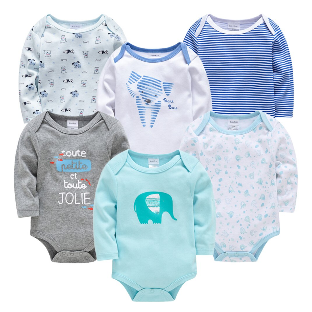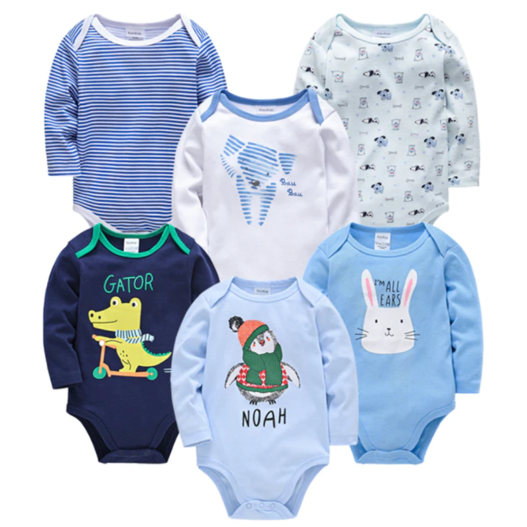 Paquete de 6 piezas de mamelucos de manga larga para bebé con estampado de dibujos animados