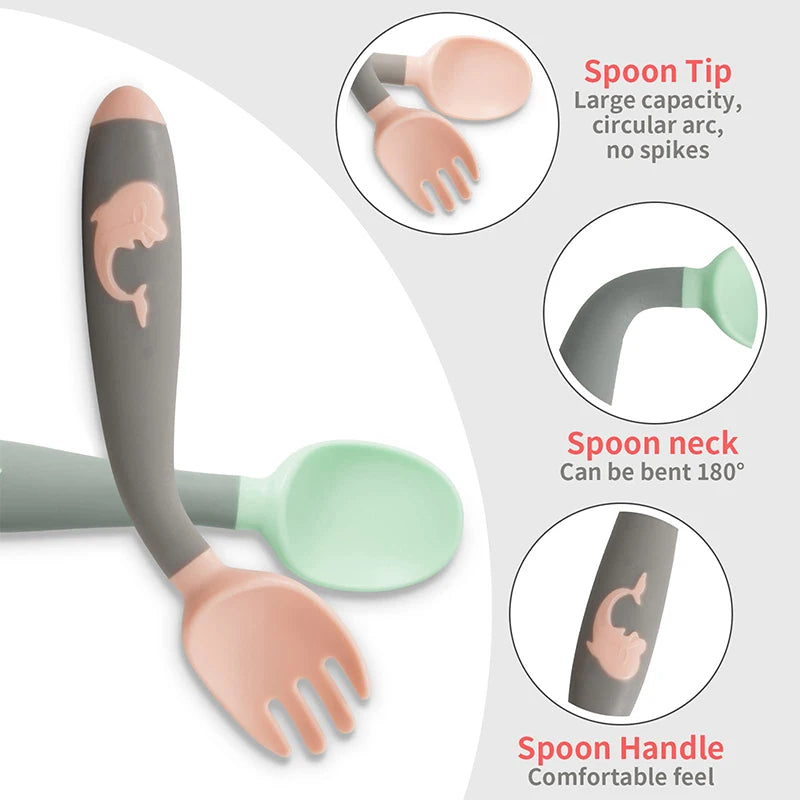 Set de utensilios de silicona para bebé: cucharas de entrenamiento para niños