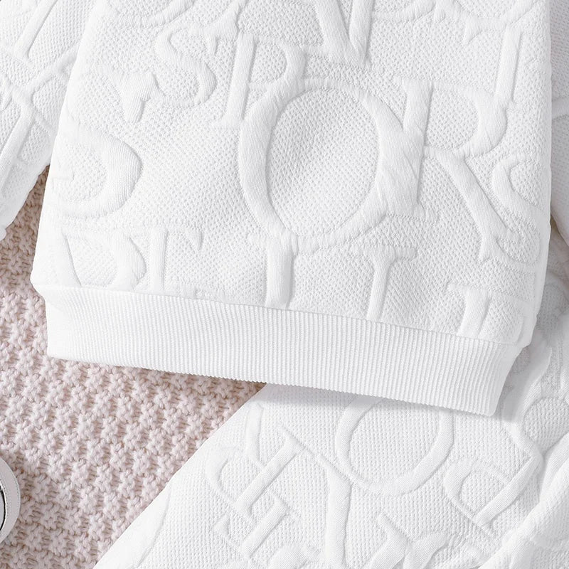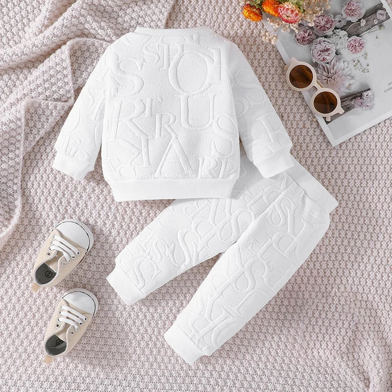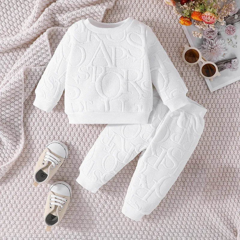 Comodidad inigualable en cada detalle Deleite a su bebé con la lujosa comodidad de nuestros conjuntos de ropa, meticulosamente elaborados con poliéster de alta calidad. El conjunto de camiseta de manga larga y pantalón largo garantiza un toque suave contra la delicada piel de tu bebé, permitiéndole explorar el mundo con comodidad y estilo.