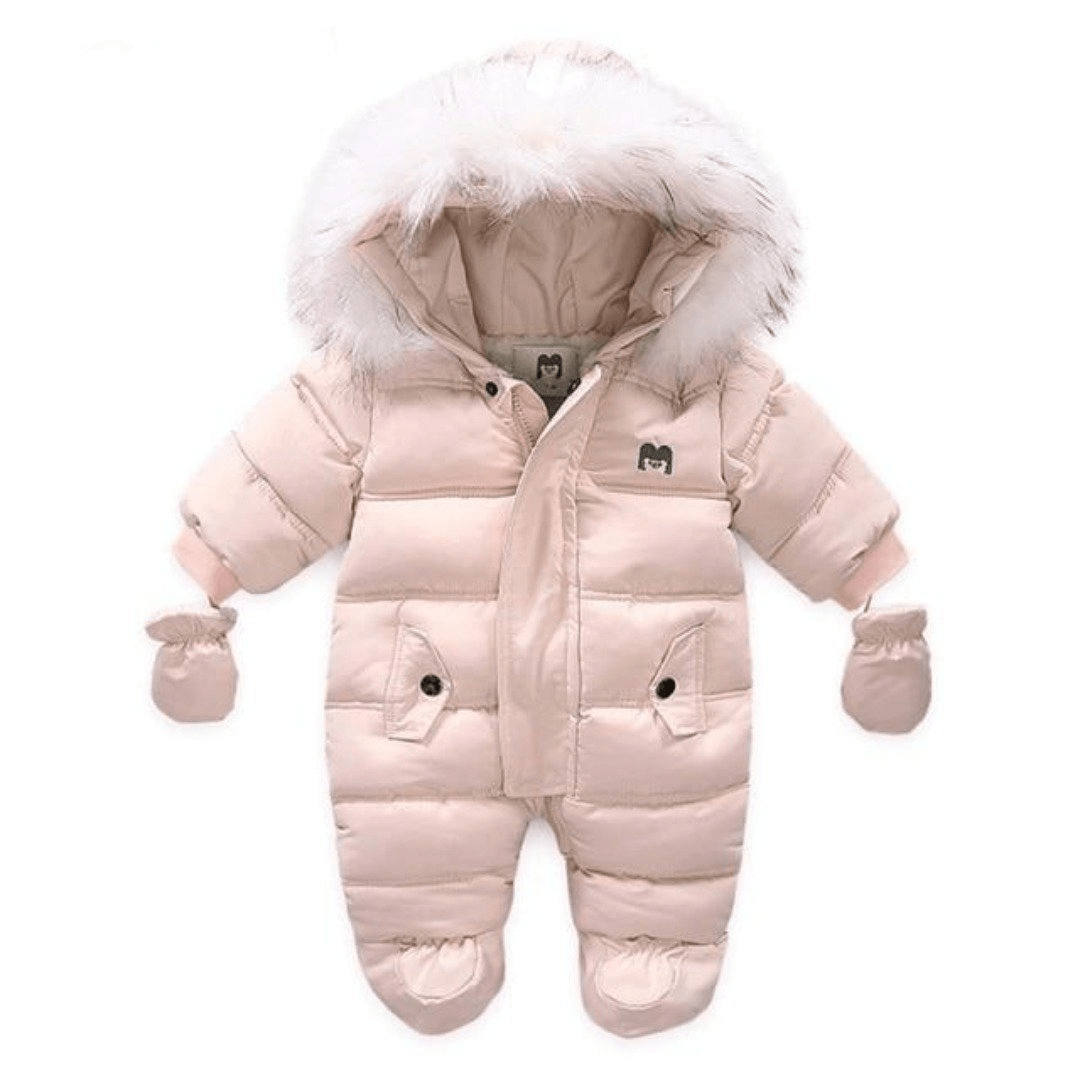 Mono parka para bebé con capucha de piel desmontable y manoplas