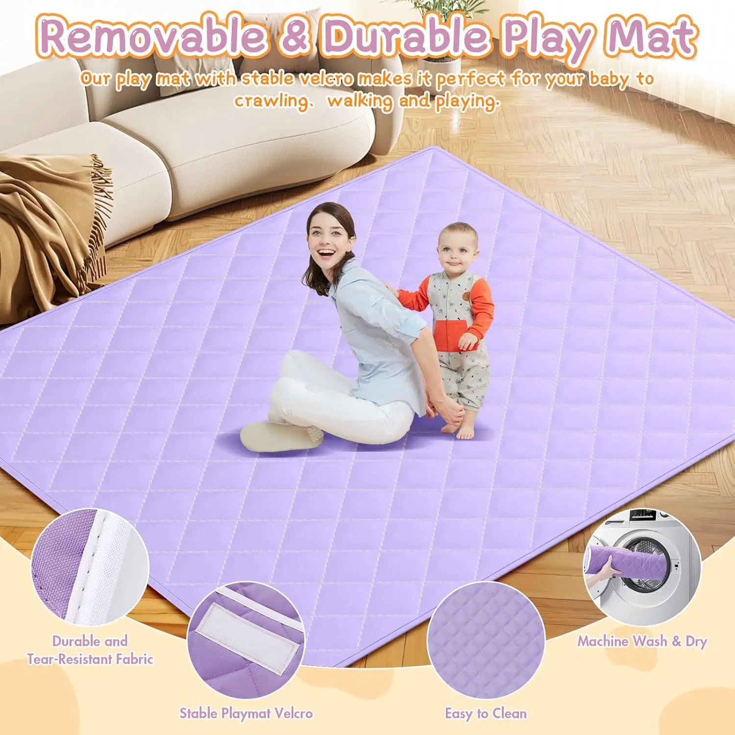 Corralito extra grande para bebés con colchoneta – 79" x 71" patio de juegos seguro para bebés y niños pequeños – Malla transpirable, acolchado suave, cerca anti-caídas con puerta con cremallera y 2 asas