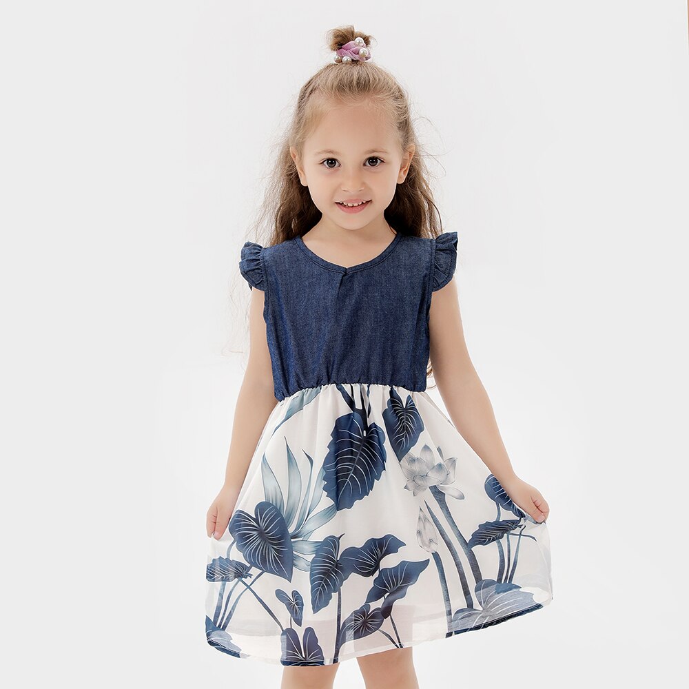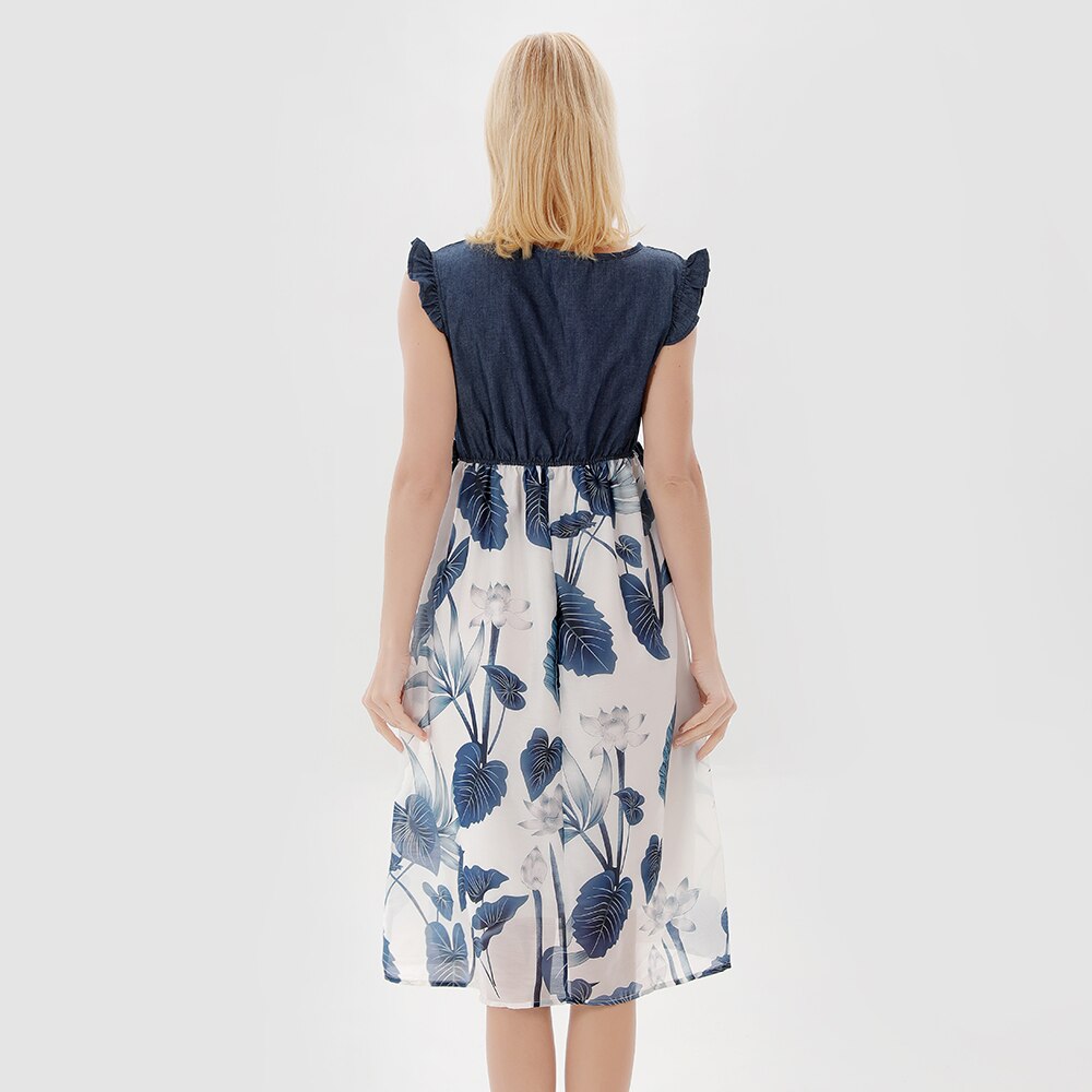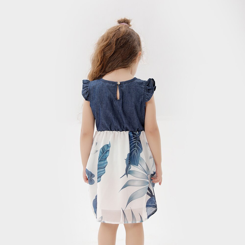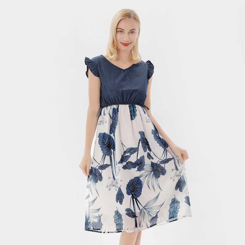 Vestido a juego familiar con estampado de flores y manga con volantes para vestido de madre e hija