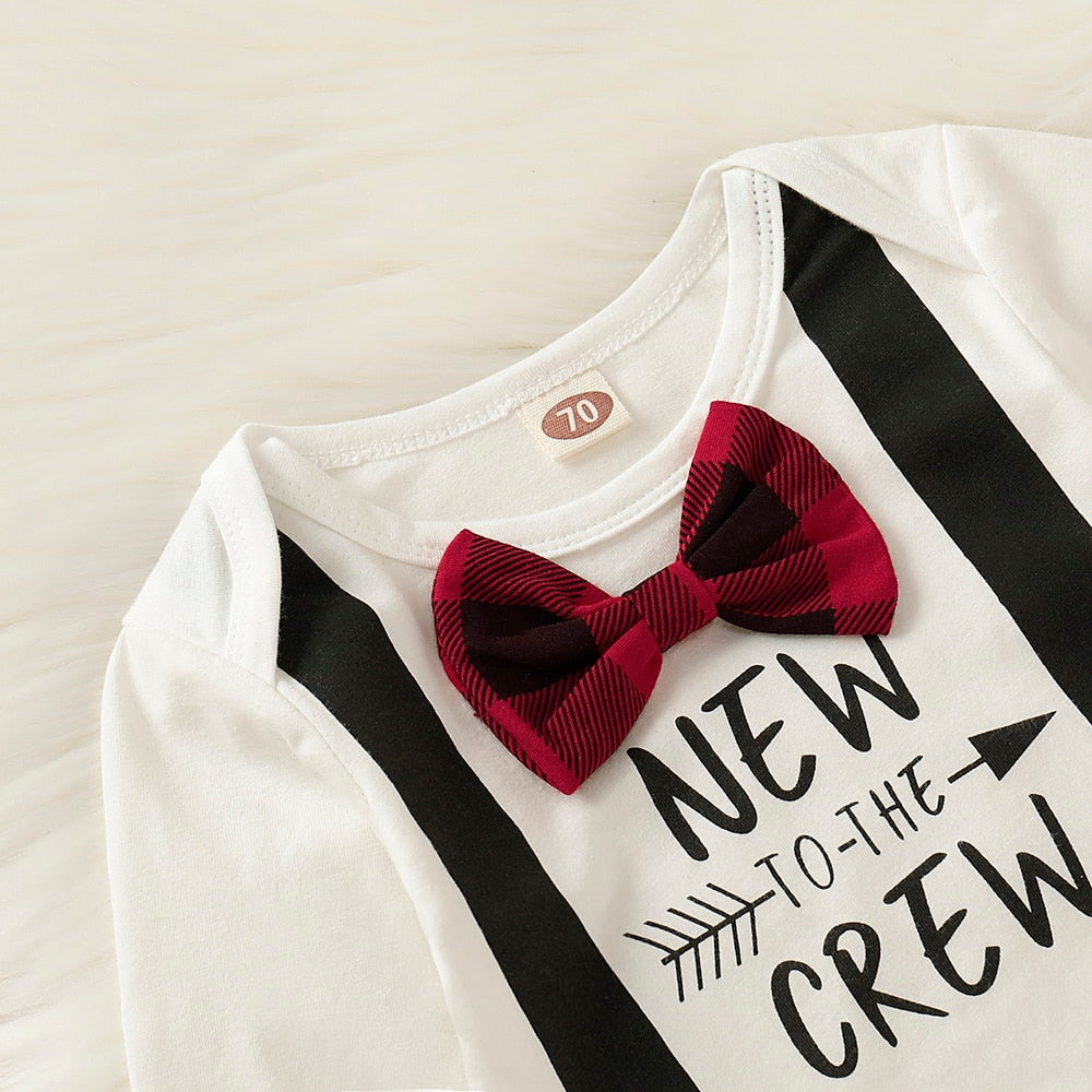Tu pequeño seguramente ganará corazones con este conjunto de mameluco con pajarita New Crew. Completa el juego con capó para conseguir ese look de chico de al lado. Siéntete abrigado durante el clima frío o simplemente cómodo para disfrutar del tiempo de juego al aire libre.