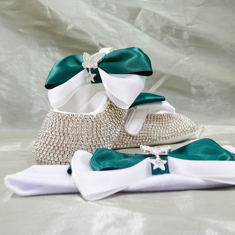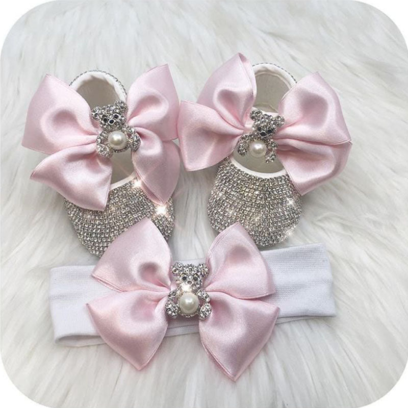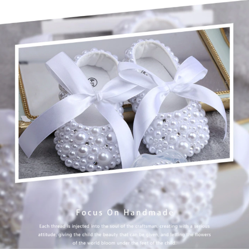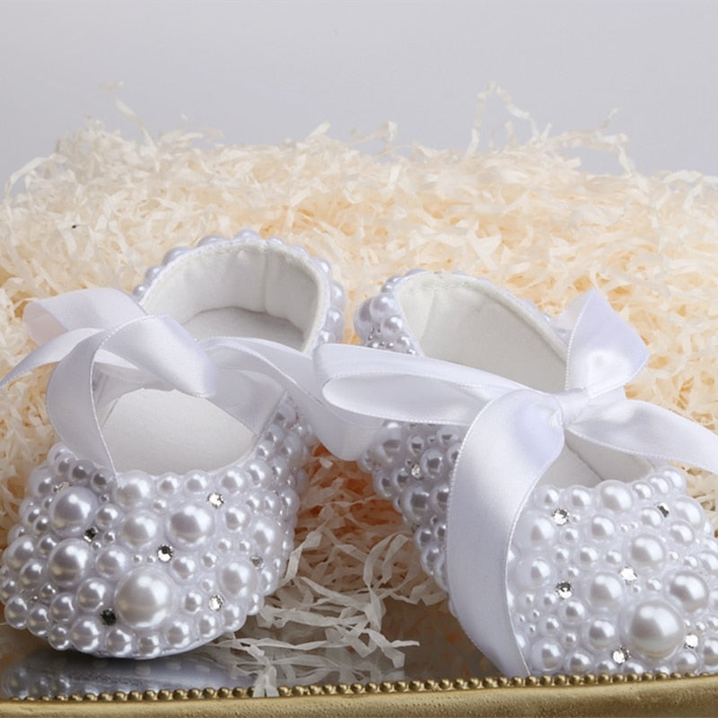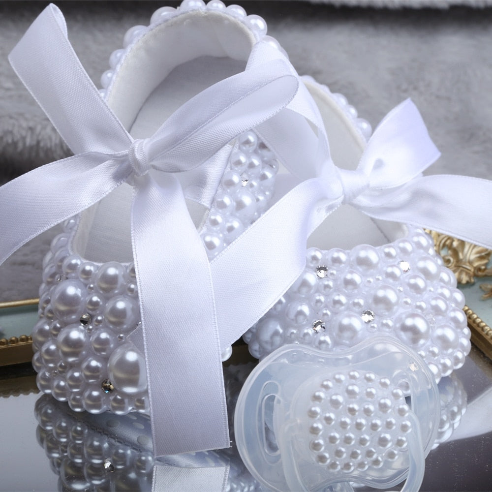 El bautismo es uno de los hitos en la vida de un niño. Cubra los pequeños dedos de sus preciosas gemas con estos zapatos de bebé Pearl Ribbon. Viene con chupete a juego.