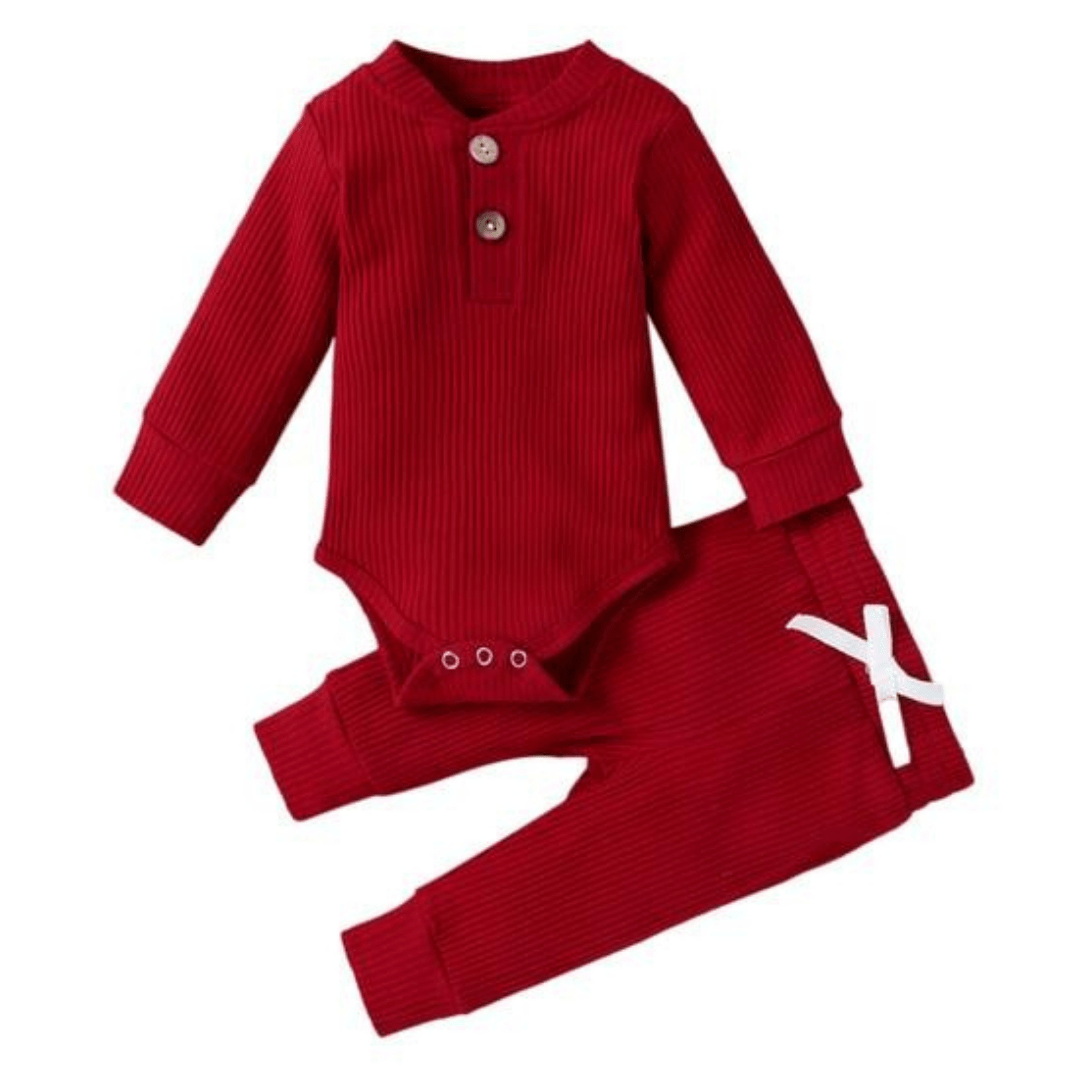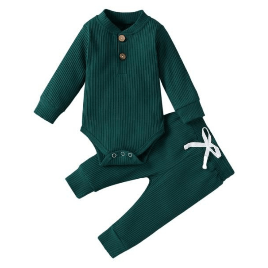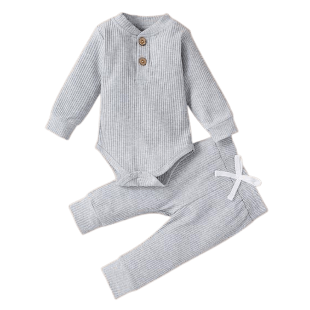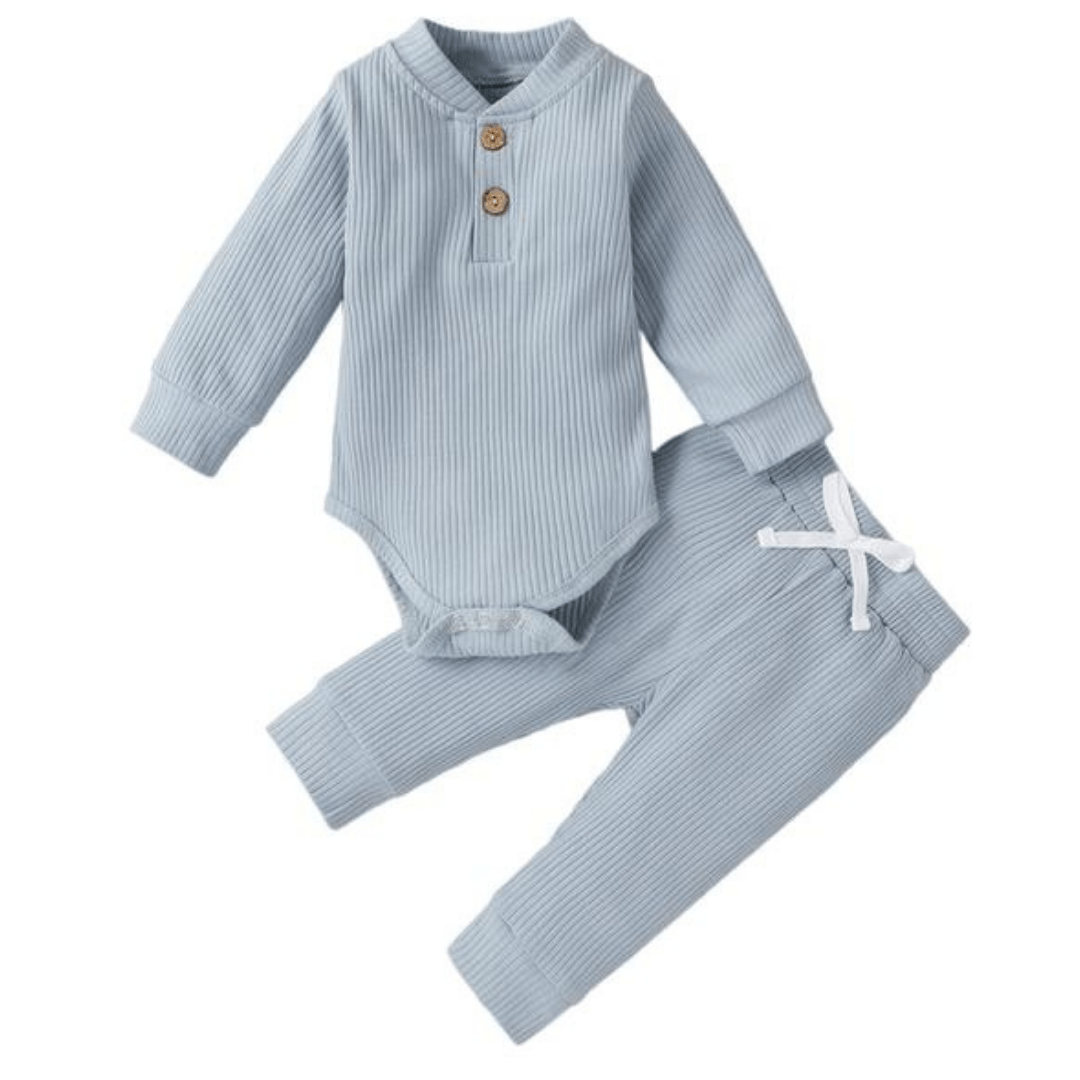 Conjunto de pantalones y mameluco de manga larga de algodón de punto acanalado
