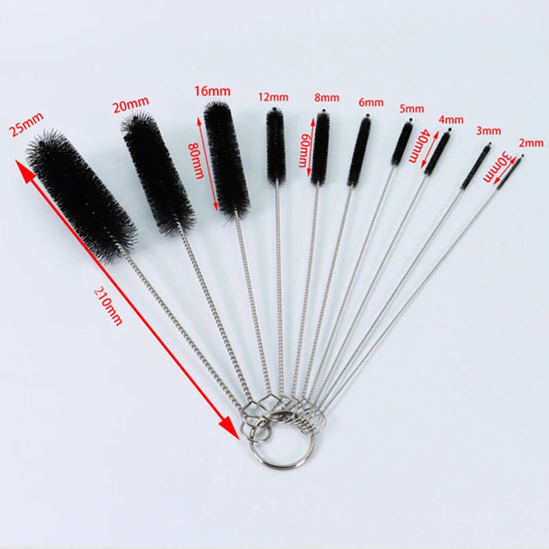 Este juego consta de 10 cepillos tubulares, cada uno con diferentes diámetros (de 2 mm a 25 mm), lo que permite un acceso rápido a espacios limpios de difícil acceso. El diseño de invernadero en cada extremo garantiza la máxima seguridad durante el uso.