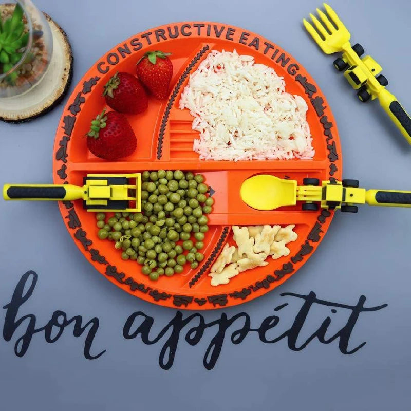 1Lovebaby Vajilla para Coche de Construcción: Juego de Comedor para niños Seguro y Divertido