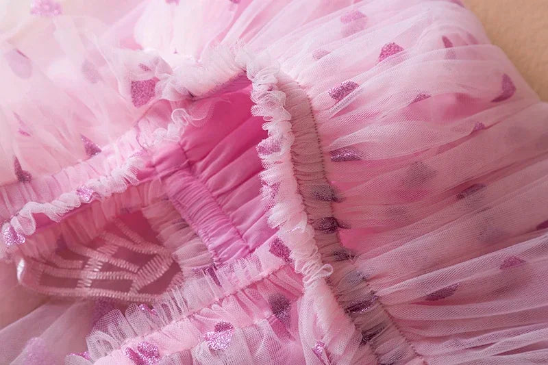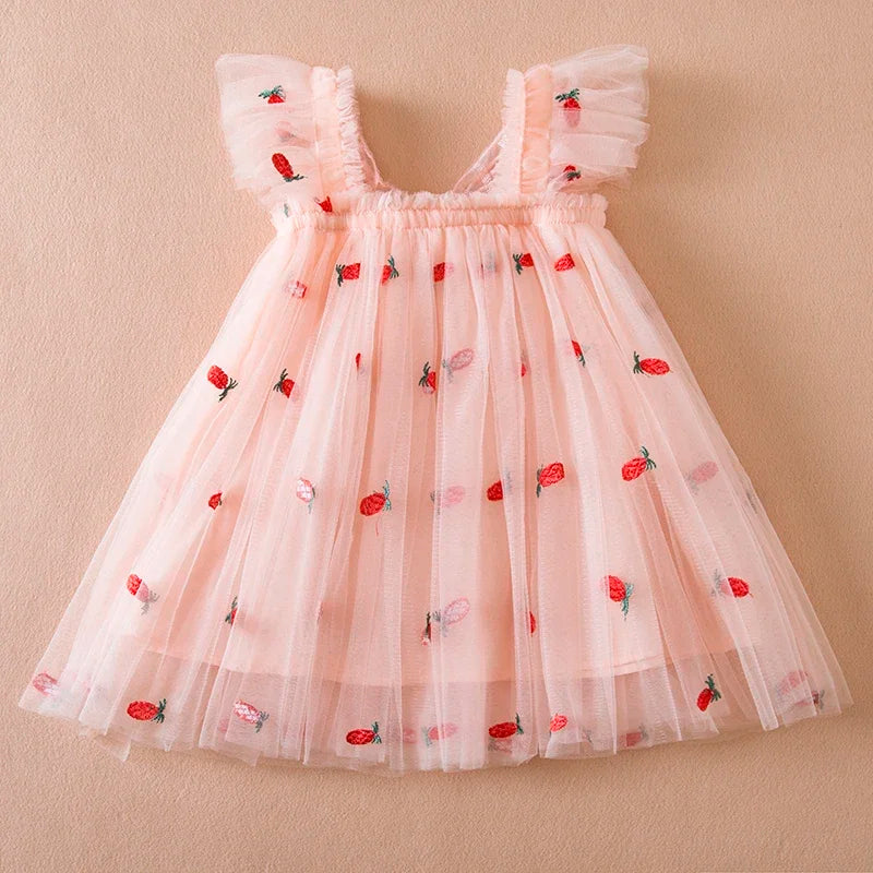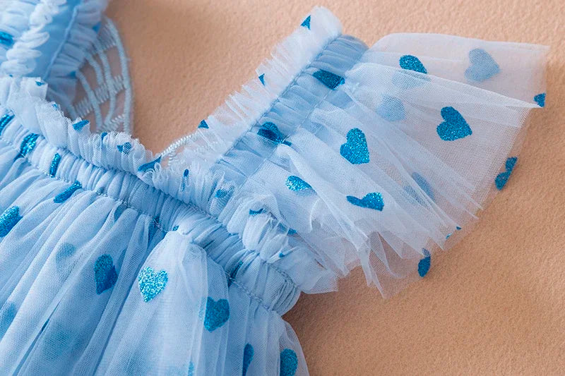 Presentamos el vestido de fiesta de cumpleaños de princesa de 1Lovebaby: vestido de tul con ala y lazo en la espalda