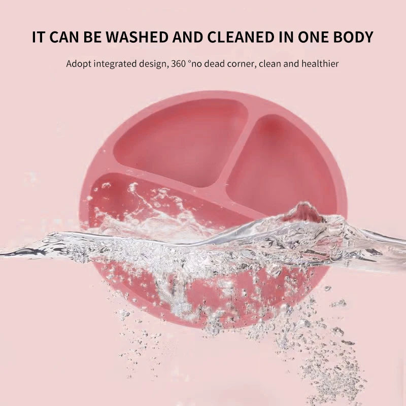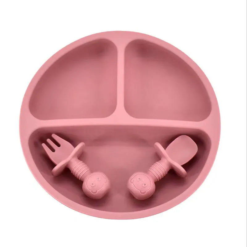 Juego de silicona para bebé de 3 piezas que incluye plato dividido, cuchara y tenedor