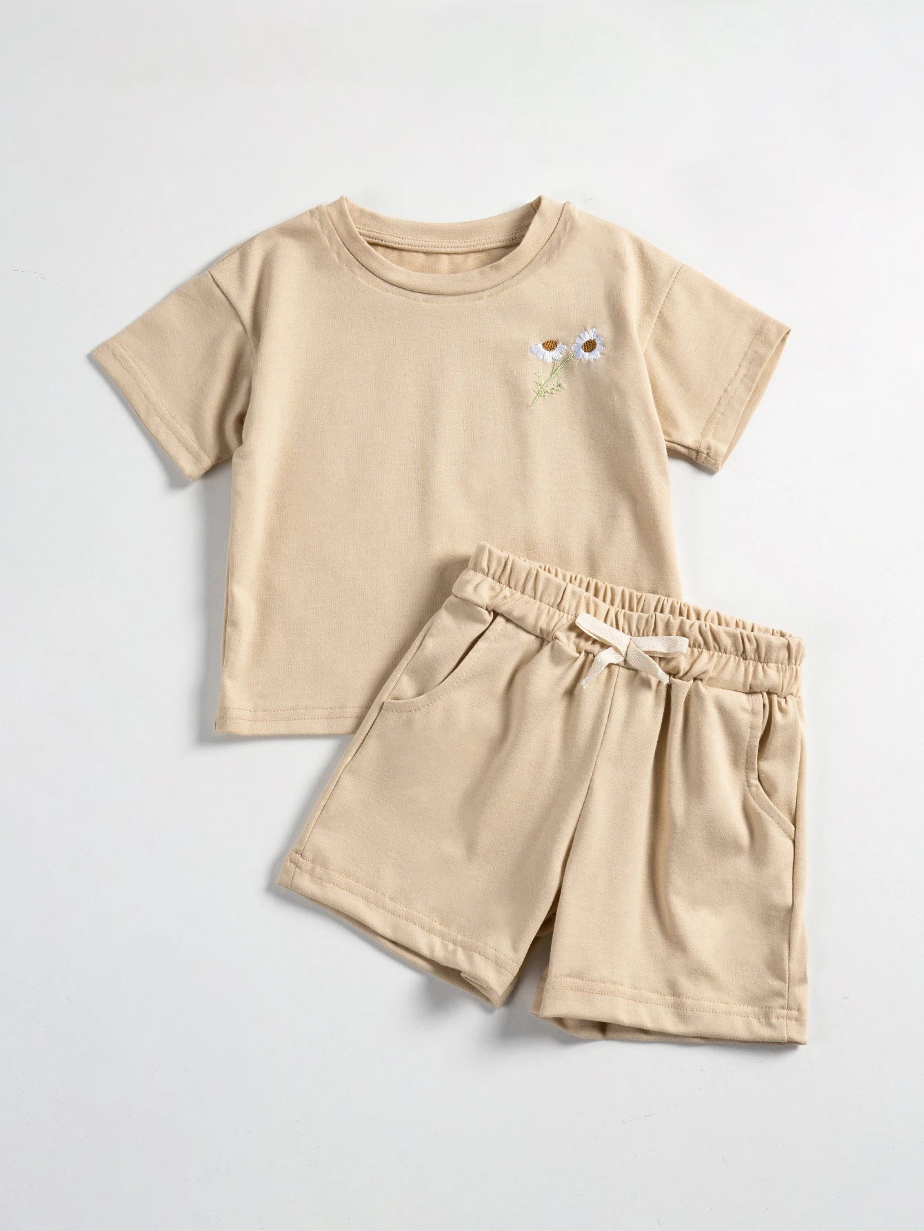 Conjuntos de verano para niños: camiseta con bordado de margaritas de rugby + conjunto de pantalones cortos
