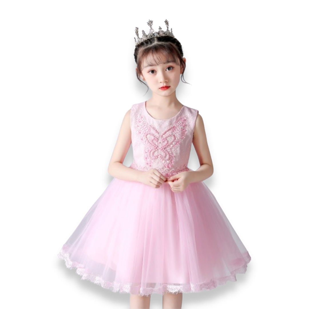 Butterfly Pearl Rhinestone and Lace Design Princess Party Dress