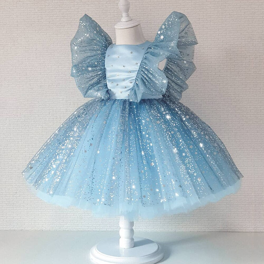 Butterfly Sleeve Lace Top and Bow Baby Dress