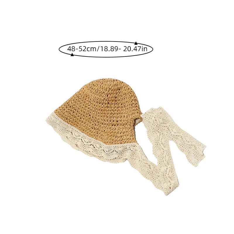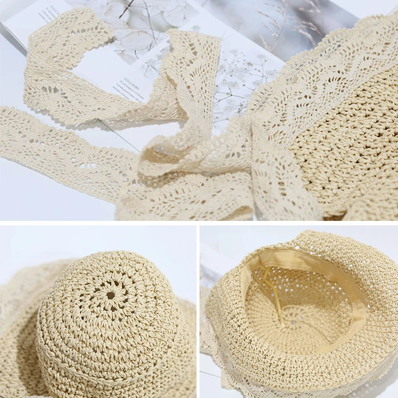 Lindo sombrero de paja de encaje para el sol: gorra panamá de ala ancha