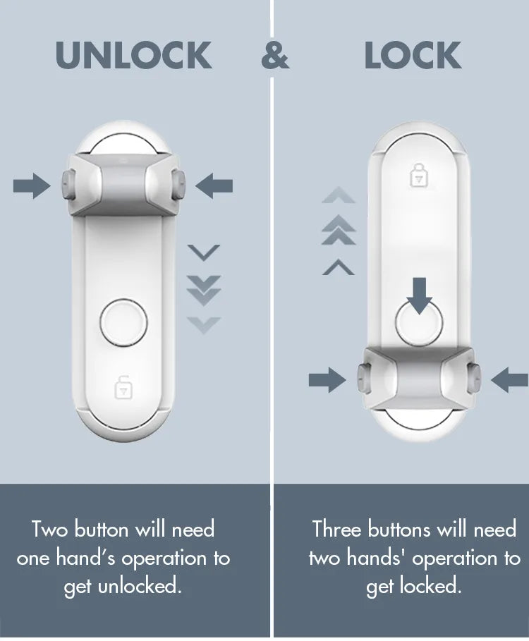 - Función: Una cerradura de gabinete eficaz diseñada para evitar que los niños abran las puertas fácilmente.