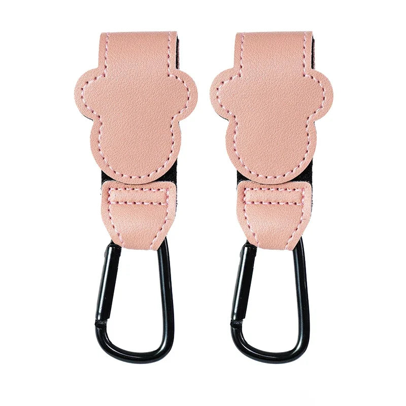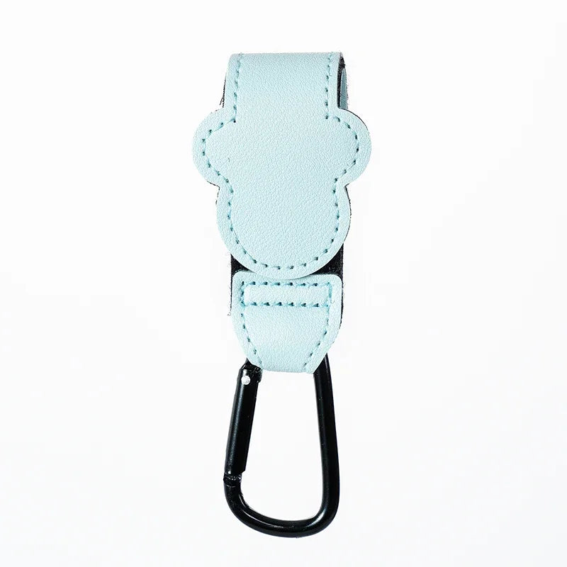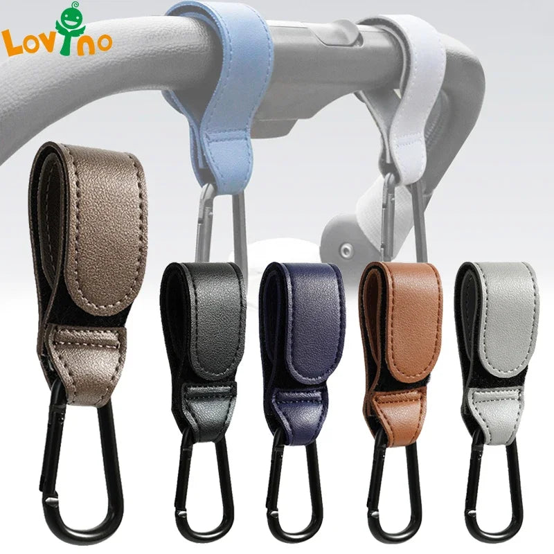 Presentamos nuestro gancho para cochecito de bebé de cuero PU a la moda: colgador ajustable para bolsa de pañales