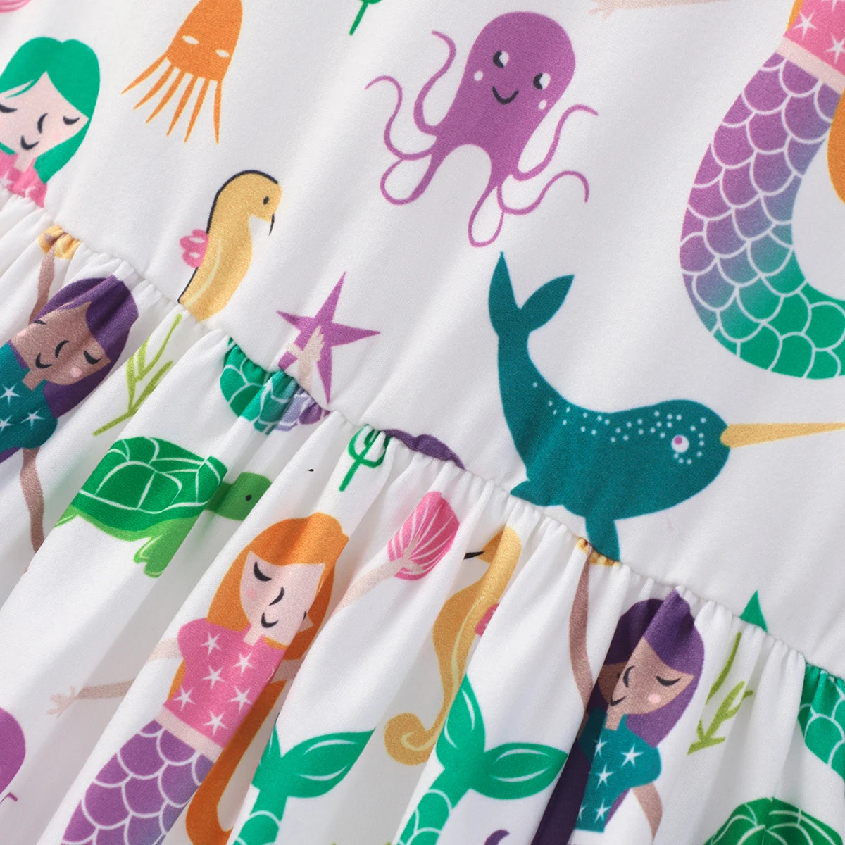 Adorable diseño de sirena: con un encantador estampado de dibujos animados de sirena, este vestido añade un toque de fantasía y fantasía al conjunto de tu pequeña, haciéndola sentir como una princesa sirena.