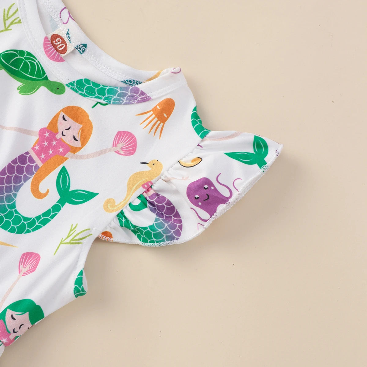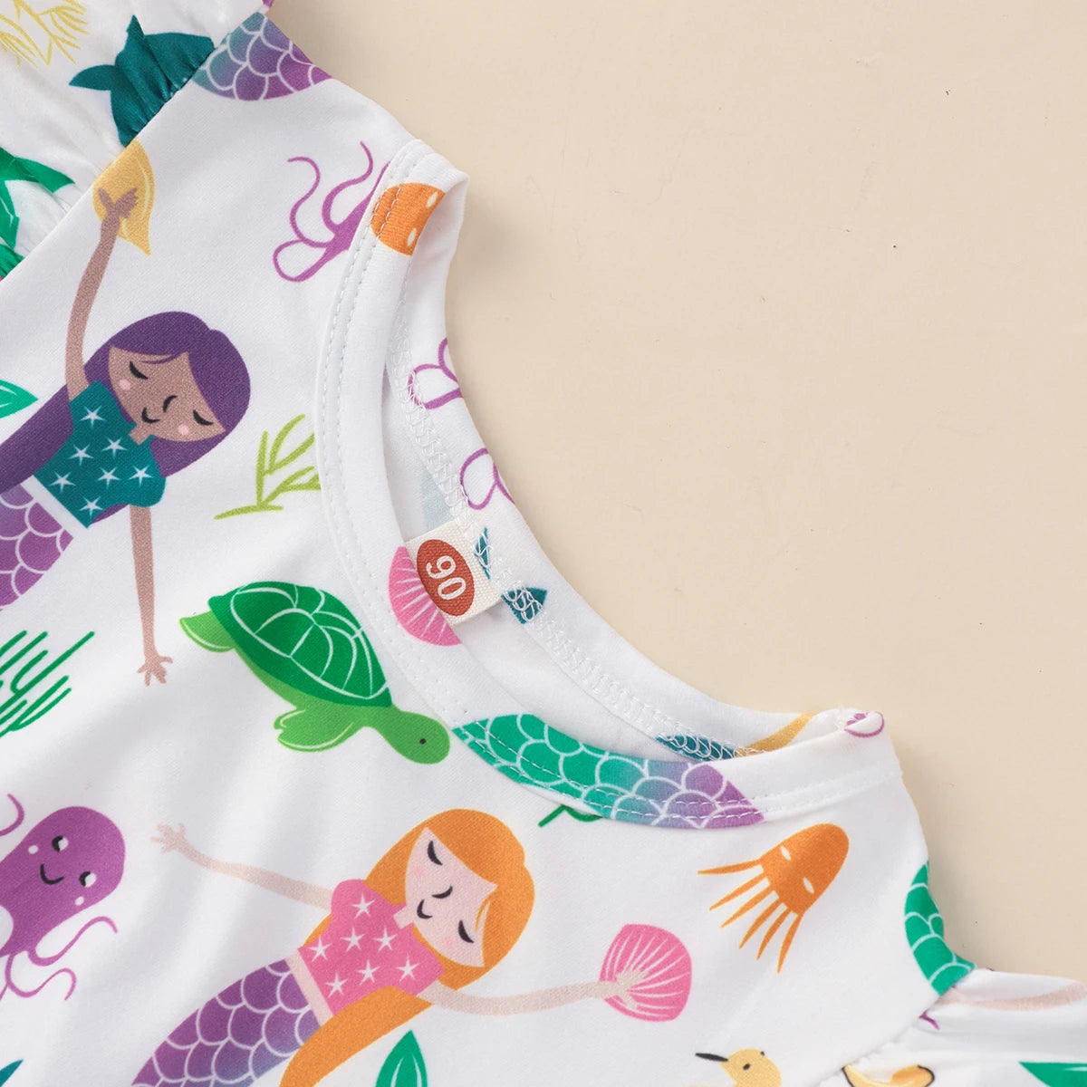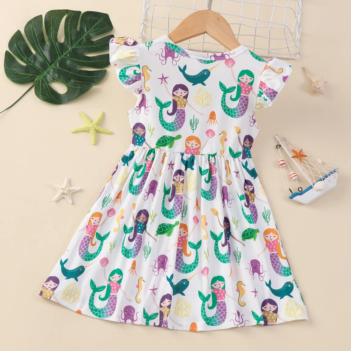 Presentamos nuestro vestido de verano de dibujos animados de sirena: vestidos de algodón con volantes para niños