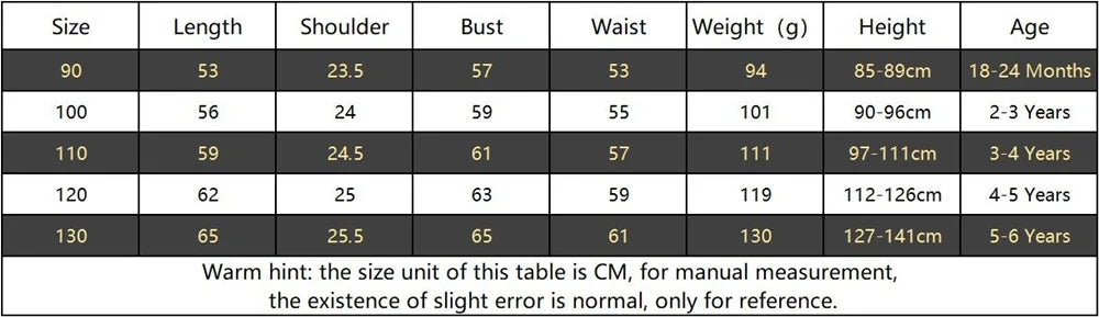 - Tabla de tallas: vestido de verano de dibujos animados de sirena