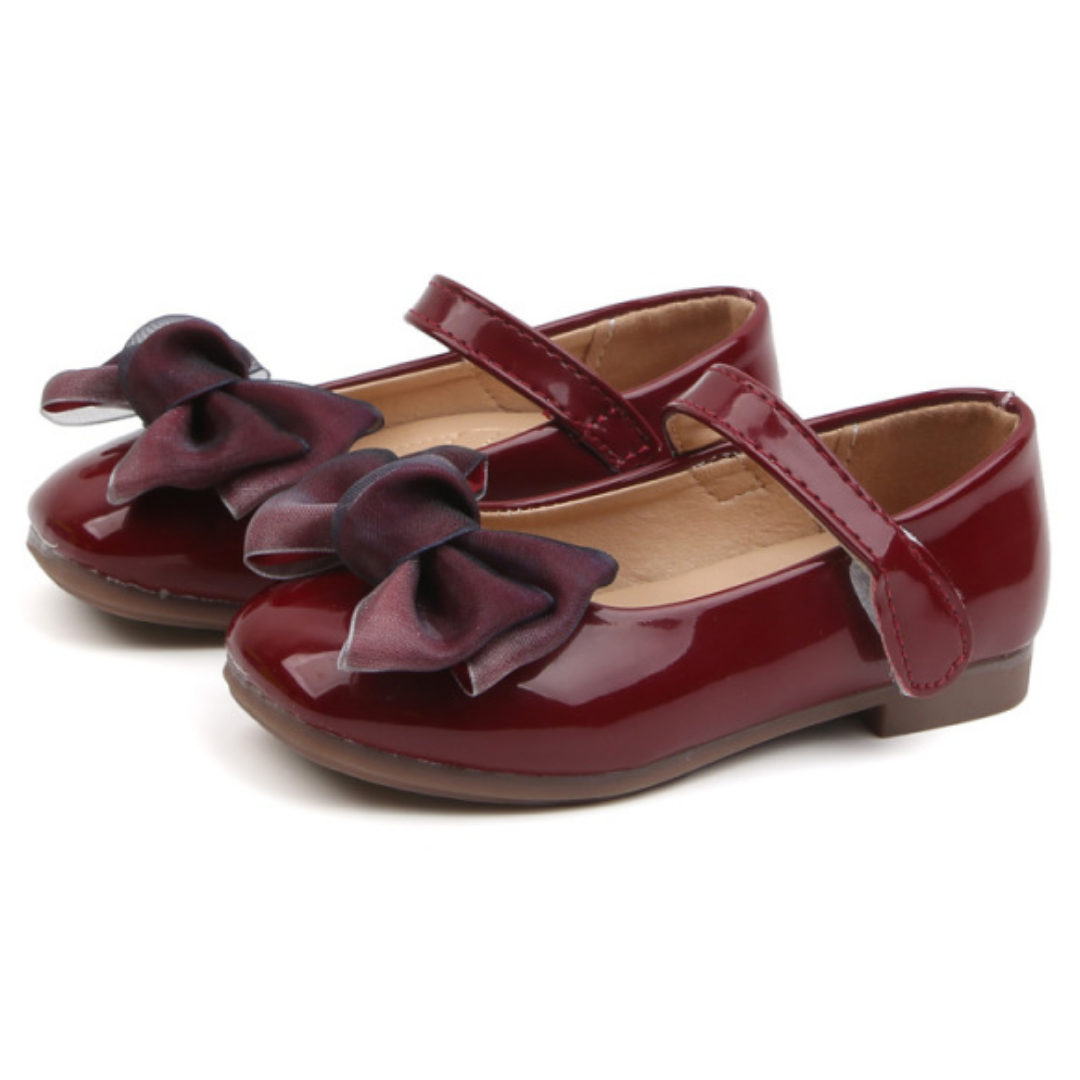 Zapatos de fiesta de moda para niñas pequeñas con diseño de lazo de cuero y malla
