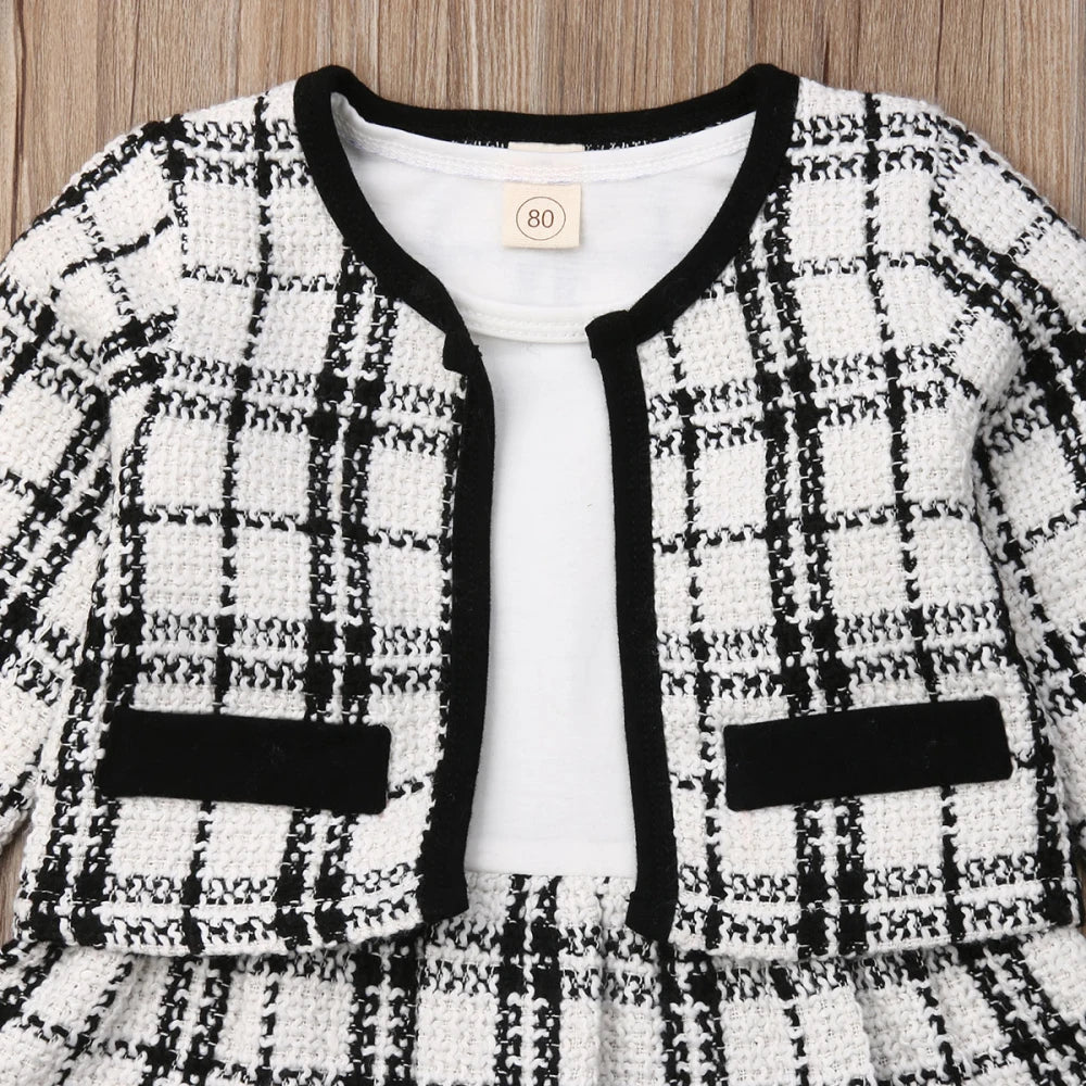 Presentamos nuestro elegante y adorable conjunto de fiesta para niñas: una encantadora combinación de abrigos a cuadros y un encantador vestido tutú (2 piezas). Elaborado con amor y cuidado, este conjunto está diseñado para hacer que tu pequeño brille durante las celebraciones de otoño, invierno y primavera.