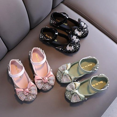 Zapatos de princesa con lazo y diamantes de imitación de perlas