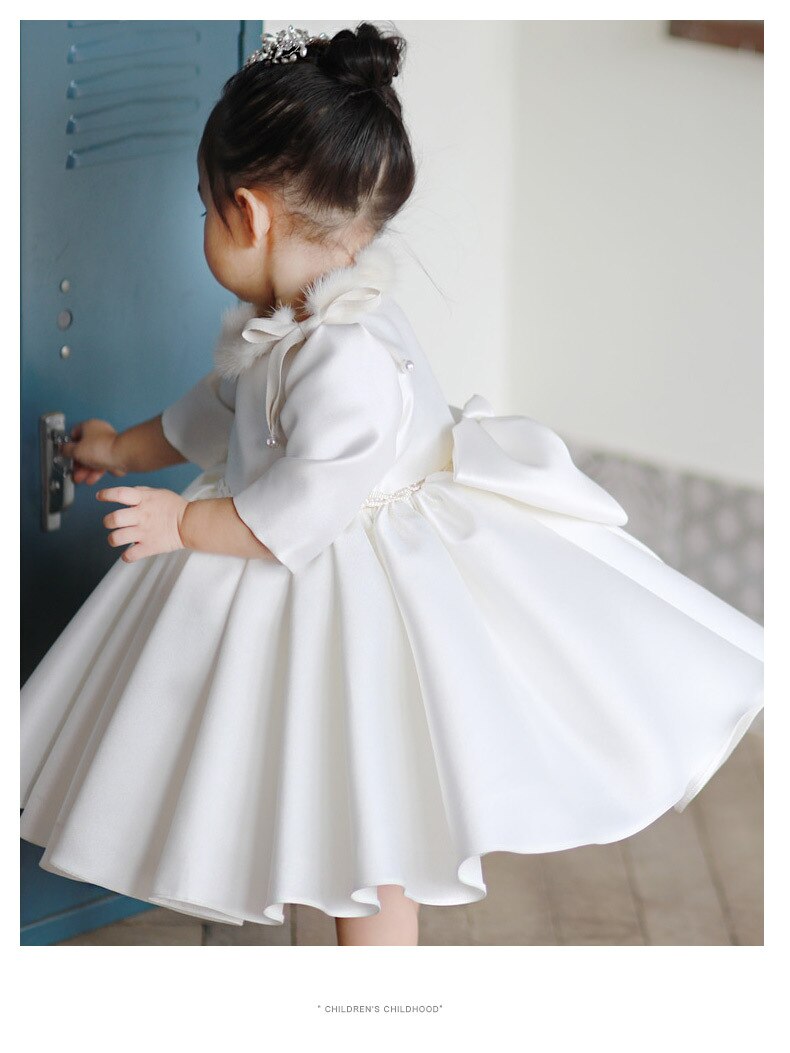 Pearl White Elegant Baby Girl Baptismal Fashion Dress