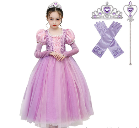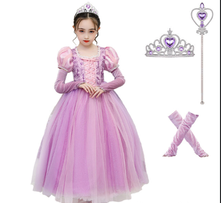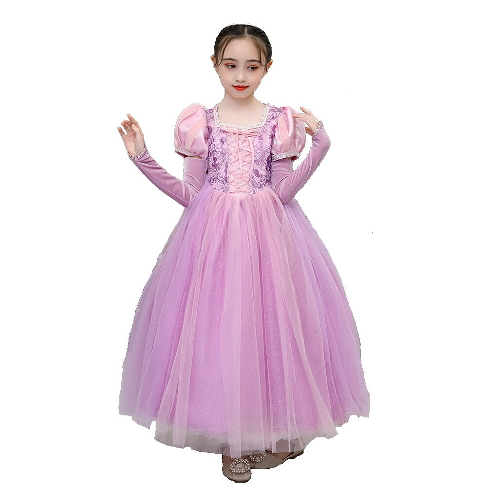 Conjunto de vestido de princesa rosa con mangas abullonadas