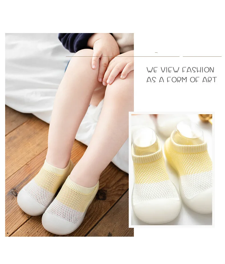 Estos zapatos para andador antideslizantes con suela de goma suave de tres colores están hechos de tela de punto, cubierta por material antideslizante, que es suave y cómodo para su bebé. Este zapato proporciona protección y ayuda a que tu bebé camine de forma más segura, además de hacer que el proceso de caminar sea más fácil y agradable.