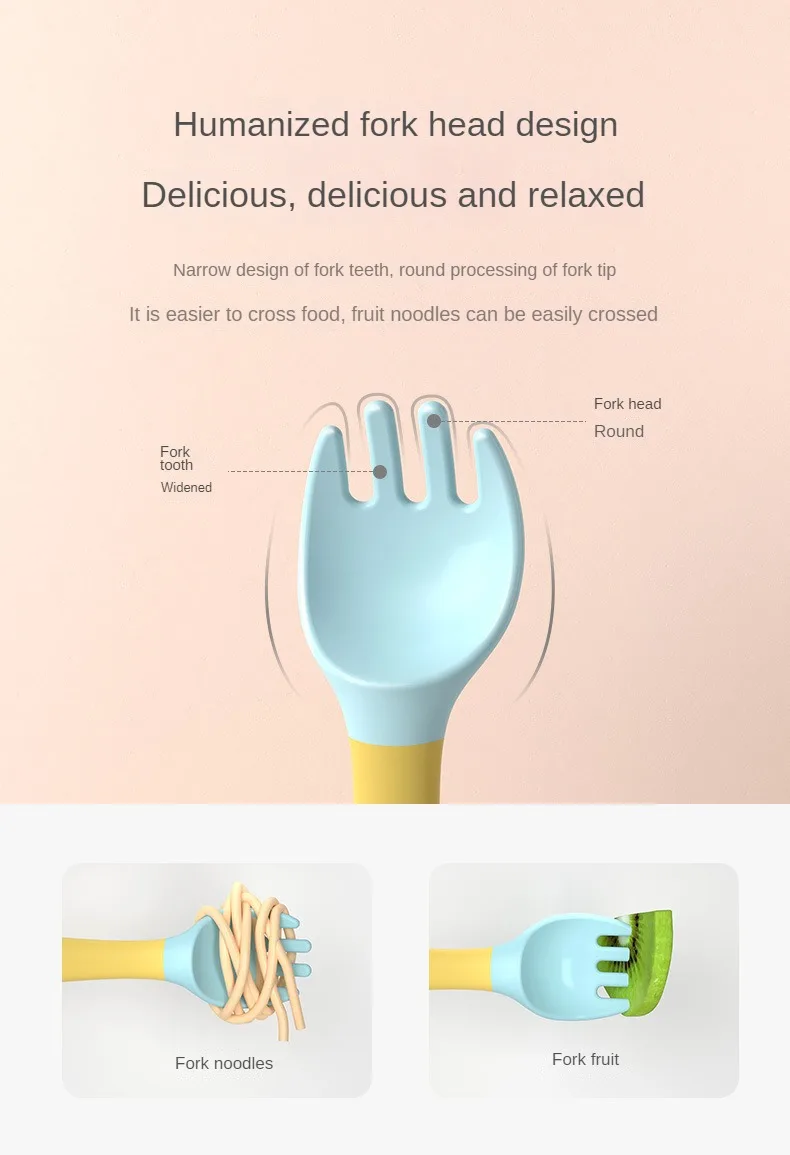 - Package includes: 1 x Baby Silicone Spoon Fork Set