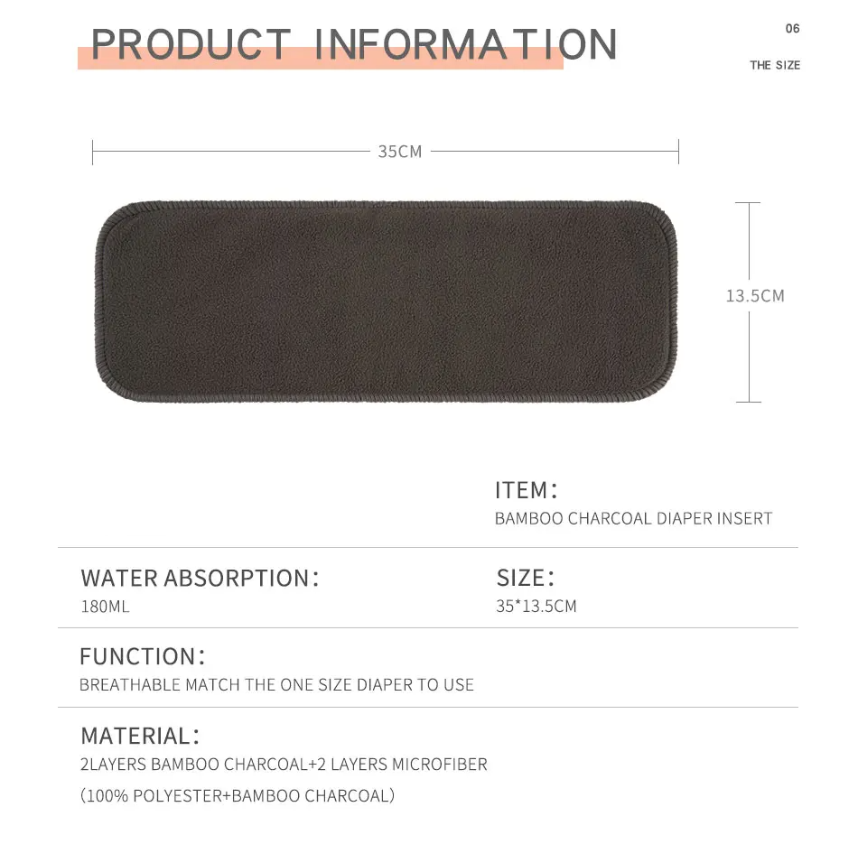 - Material: Constructed with a blend of charcoal fiber and polyester, creating a soft and absorbent layer against your baby's skin.