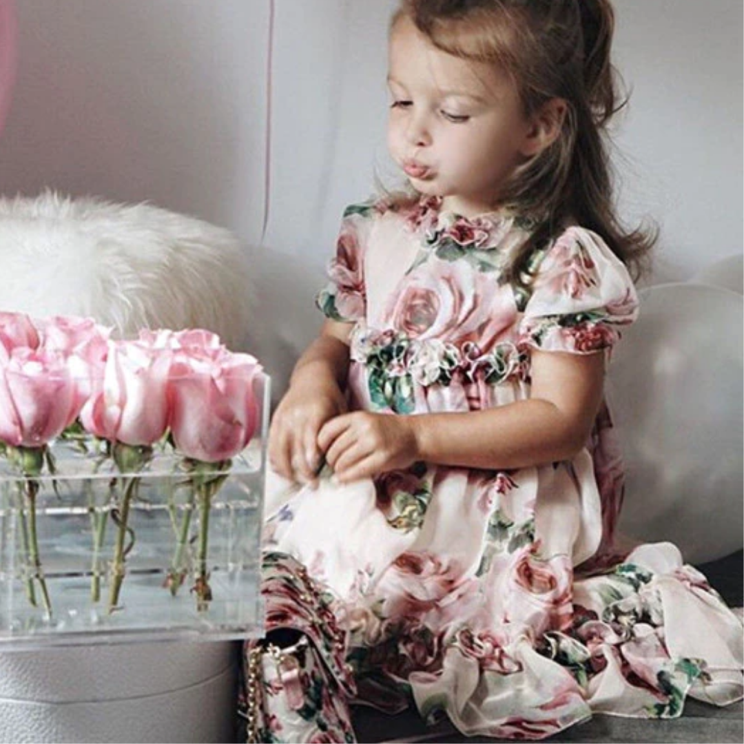 3D Floral Full Print Design Puff Sleeves Baby Princess Dress