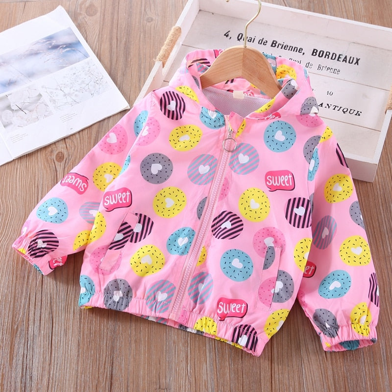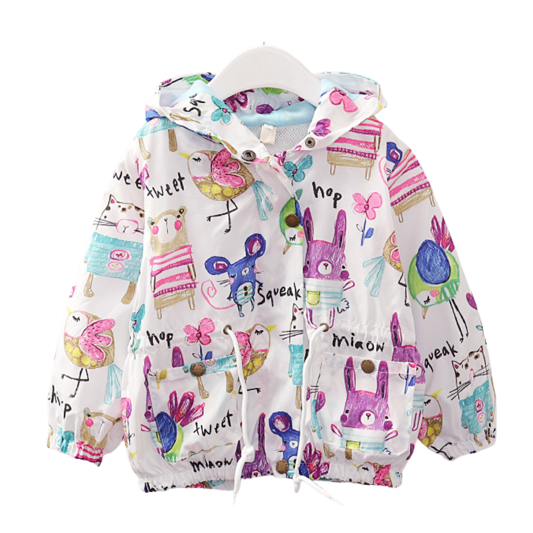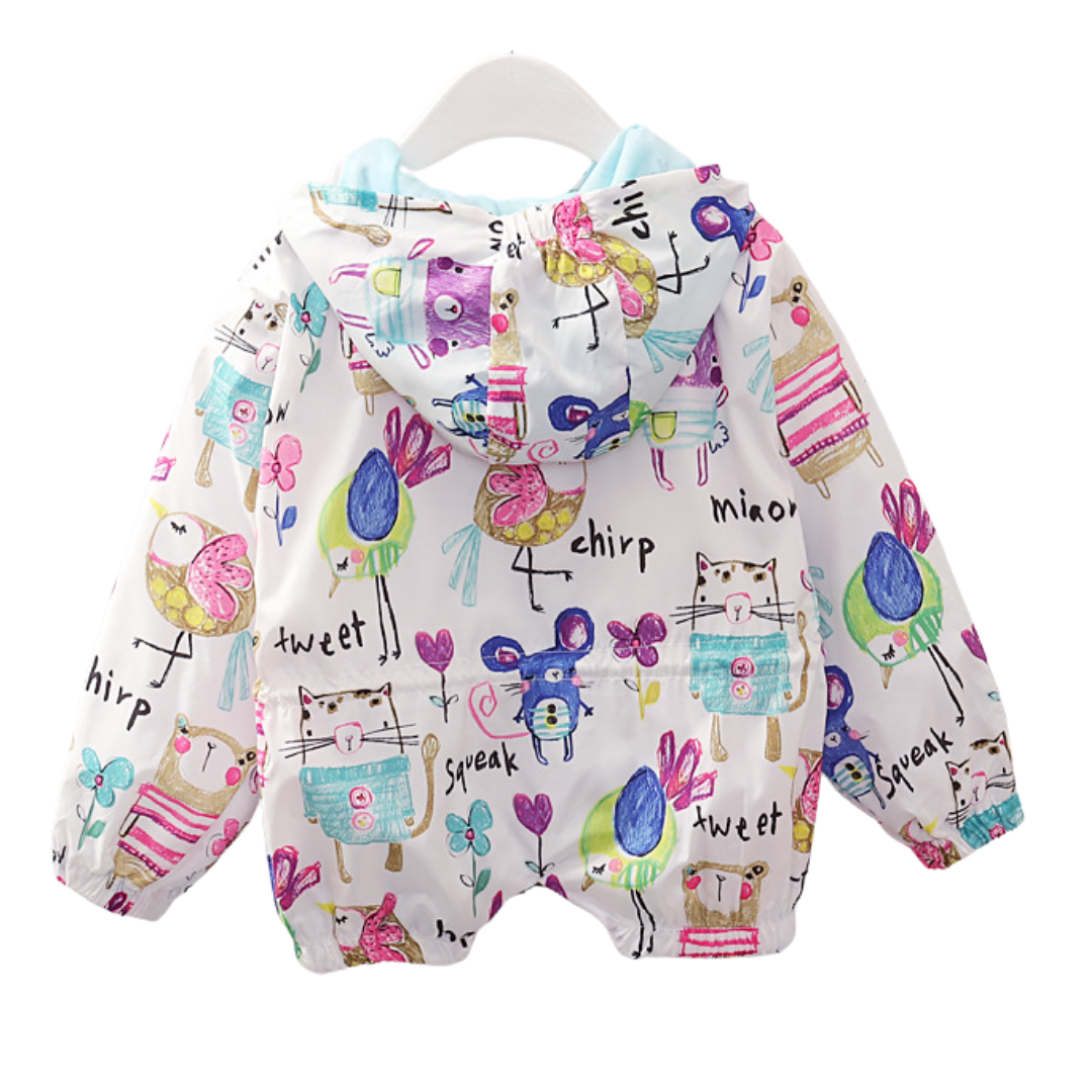 Chaqueta cortavientos con capucha y grafiti de dibujos animados de animales