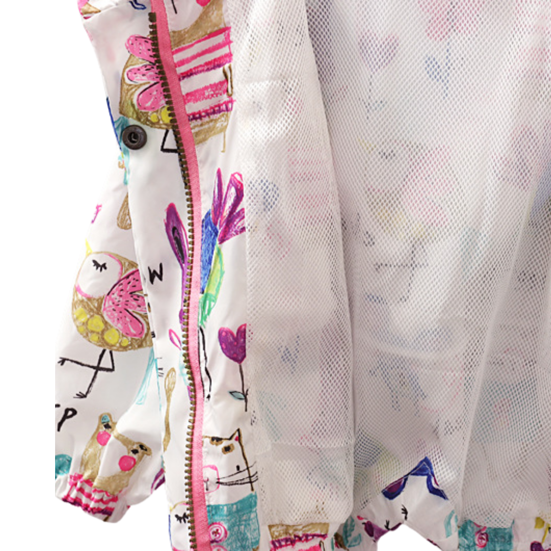 Prepare a sus niñas para el clima con esta chaqueta cortavientos con capucha . El material es un tejido suave, ligero y muy resistente al agua para mantenerte seco y abrigado. El diseño es slim fit con cremallera en la parte delantera y manga larga.