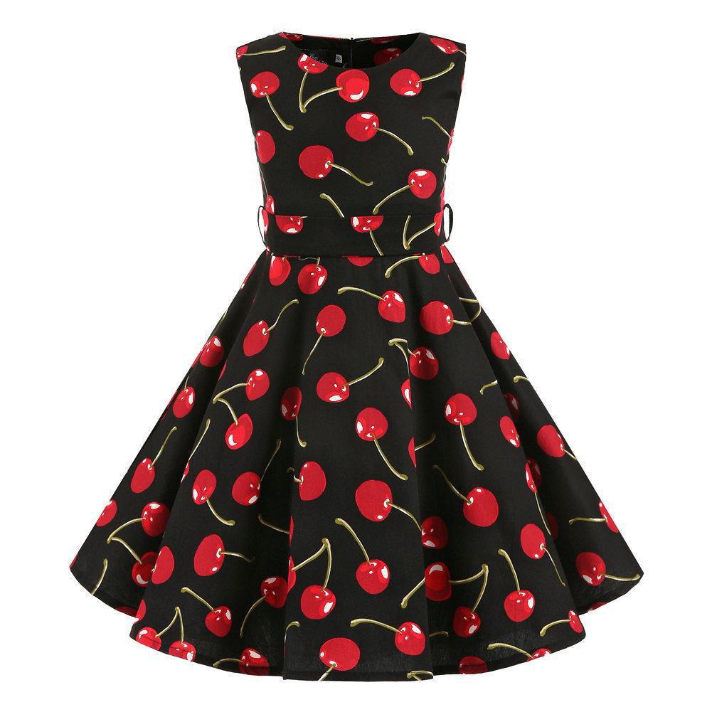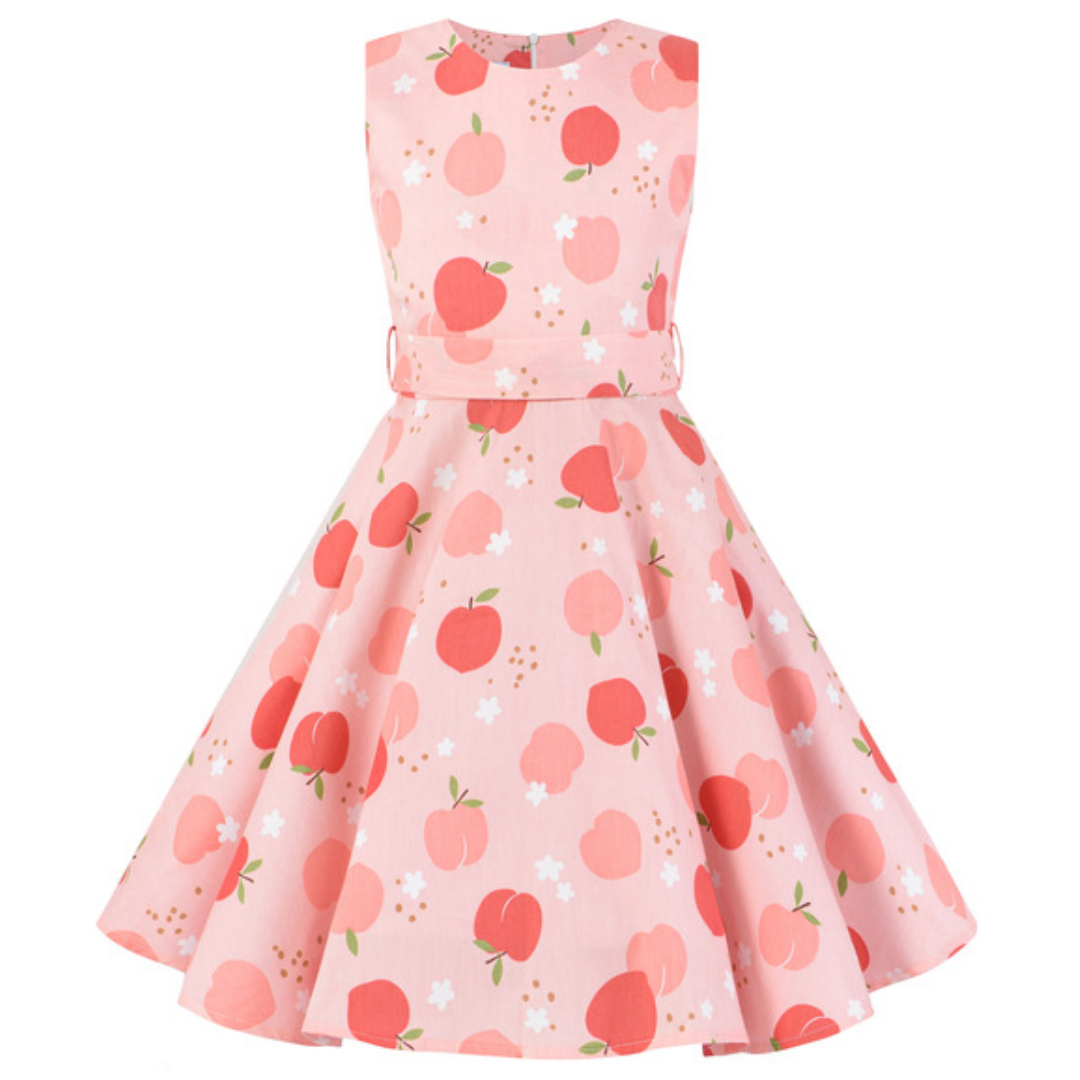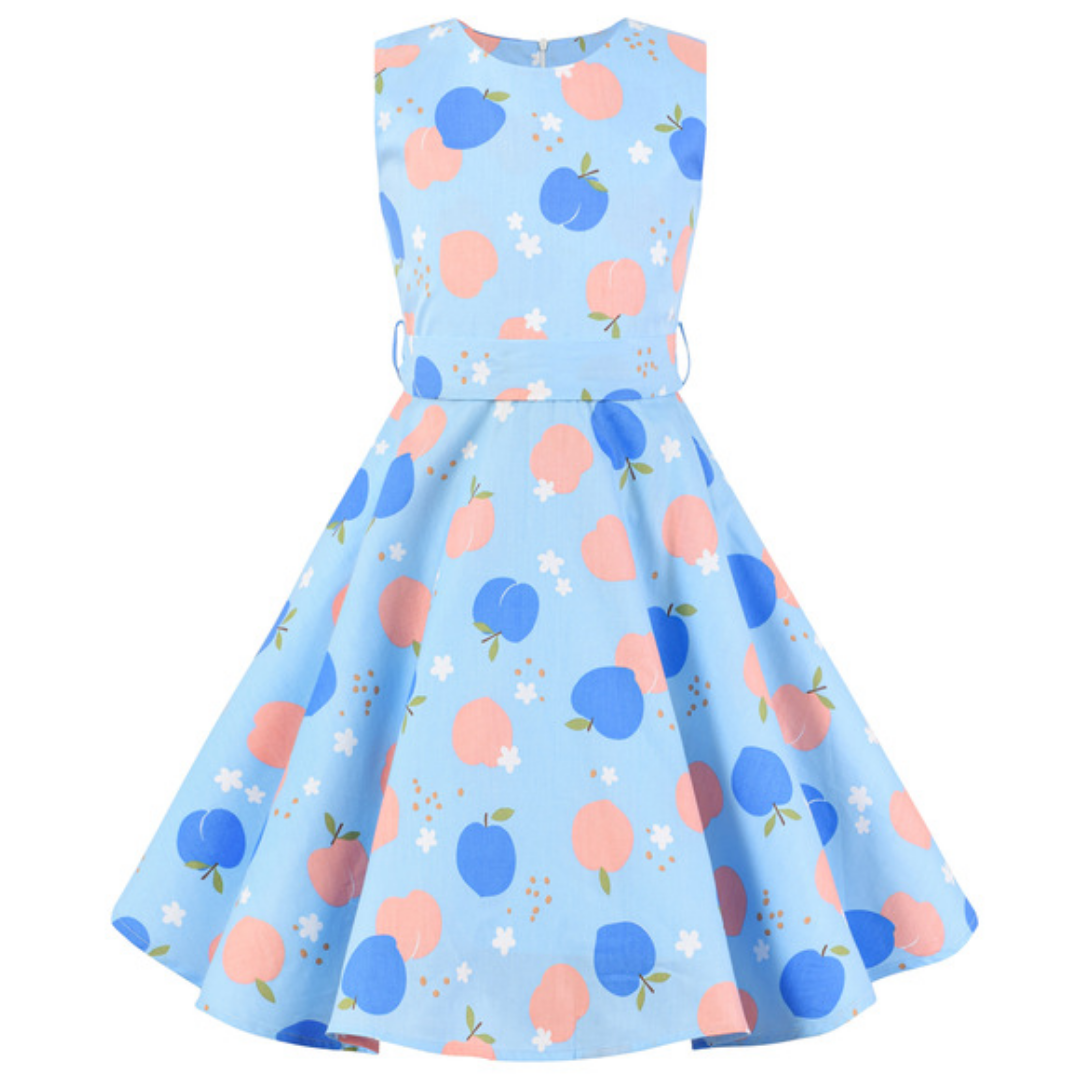 Vestido casual de verano para niñas con estampado de manzanas