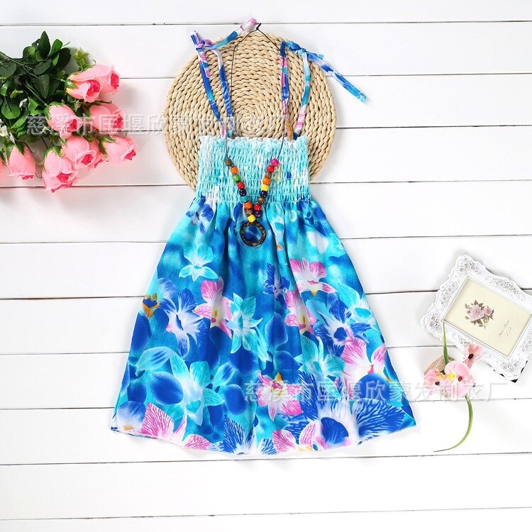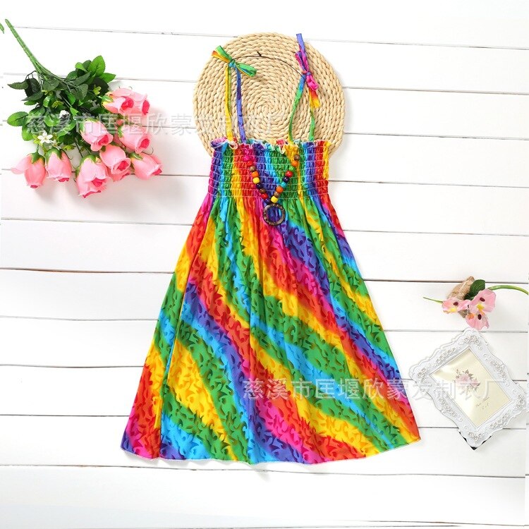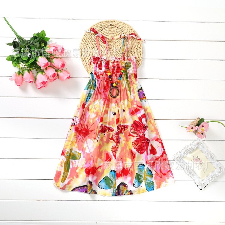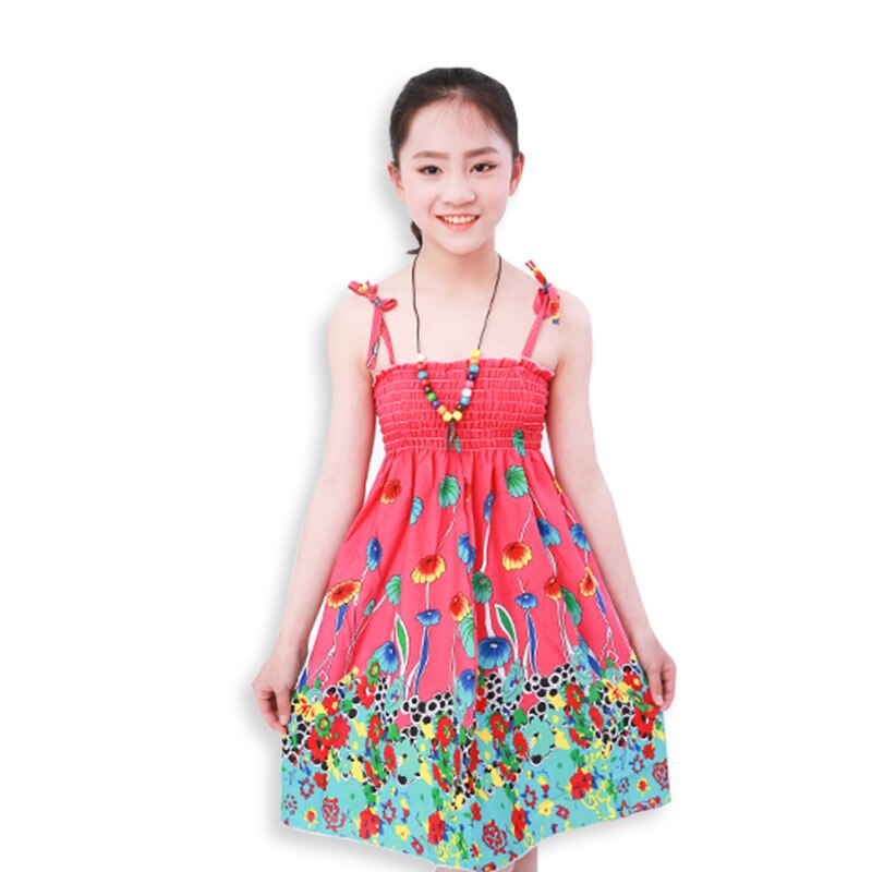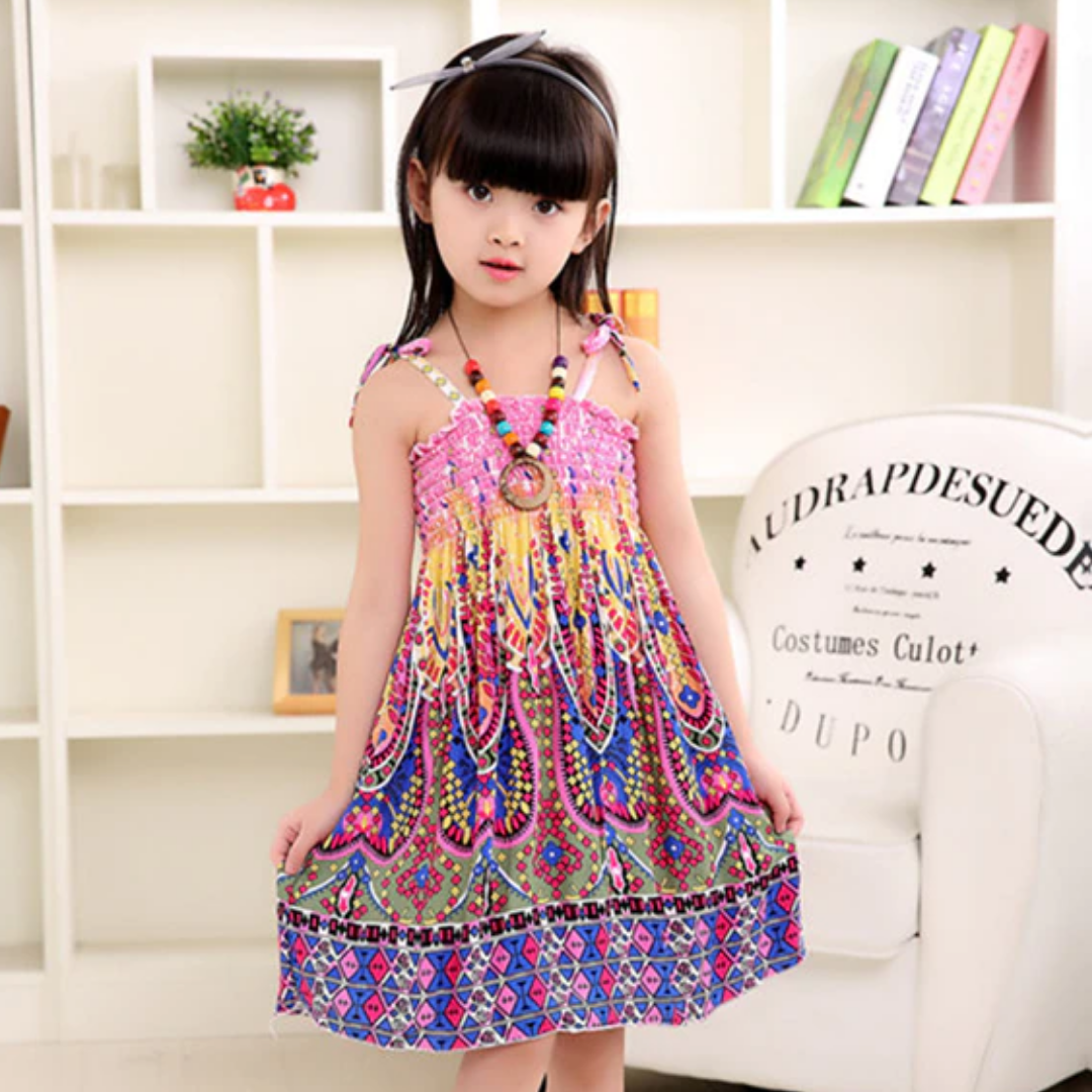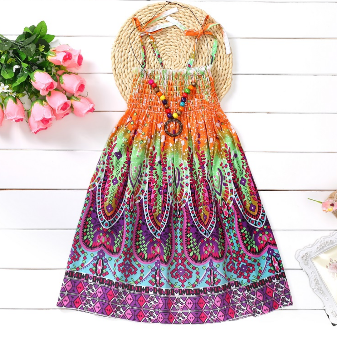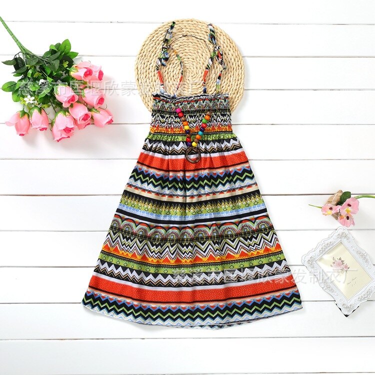 Vestido de verano para niña de playa bohemia con estampado de adornos aztecas