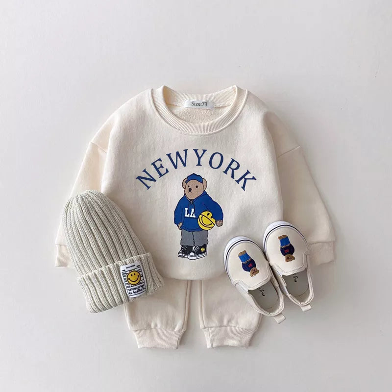 Conjunto de ropa para bebé: sudadera con capucha y pantalones con osito y letras