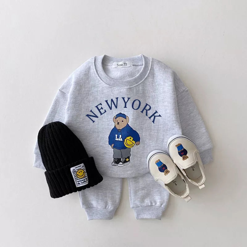 - Diseño: El conjunto incluye una sudadera con capucha con letras de oso y pantalones a juego, creando una apariencia linda y moderna.