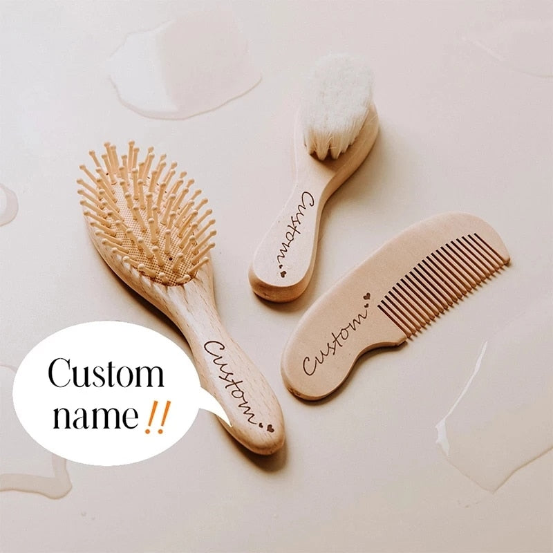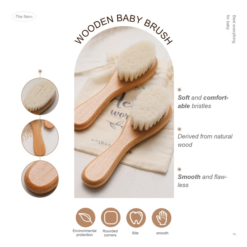 Peine de cabeza de cepillo de pelo de lana suave para bebé de madera Natural para bebé